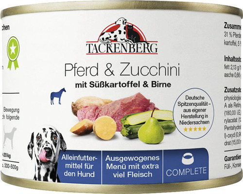 • TACKENBERG Hundefutter Pferd Mit Kartoffeln - Nassfutter Dose 6x200g Getreidefrei