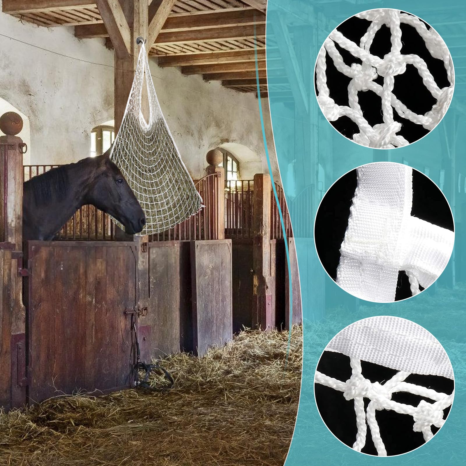 Hey, dieses Heunetz ist einfach perfekt für alle Pferdebesitzer! Mit den feinen Maschen kannst du die Fressgeschwindigkeit deines Pferdes super kontrollieren - so wird das Futter nicht einfach runtergeschlungen, sondern dein Pferd muss sich richtig anstrengen, genau wie in der Natur. Das Oxford-Material ist mega robust und hält auch den stärksten Pferdezähnen stand. Mit 44x18x22 Zoll ist der Sack richtig groß und fasst locker 2-3 Heuballen. Das Beste: Die Belüftungsöffnungen sorgen dafür, dass das Heu schön frisch bleibt. Und mit den praktischen Griffen und dem 3-seitigen Reißverschluss ist das Handling total easy - kein Verlust von Heu beim Transport! Egal ob im Stall oder auf der Weide, dieses Netz macht die Fütterung nicht nur gesünder, sondern auch viel praktischer. Dein Pferd wird's dir danken!
