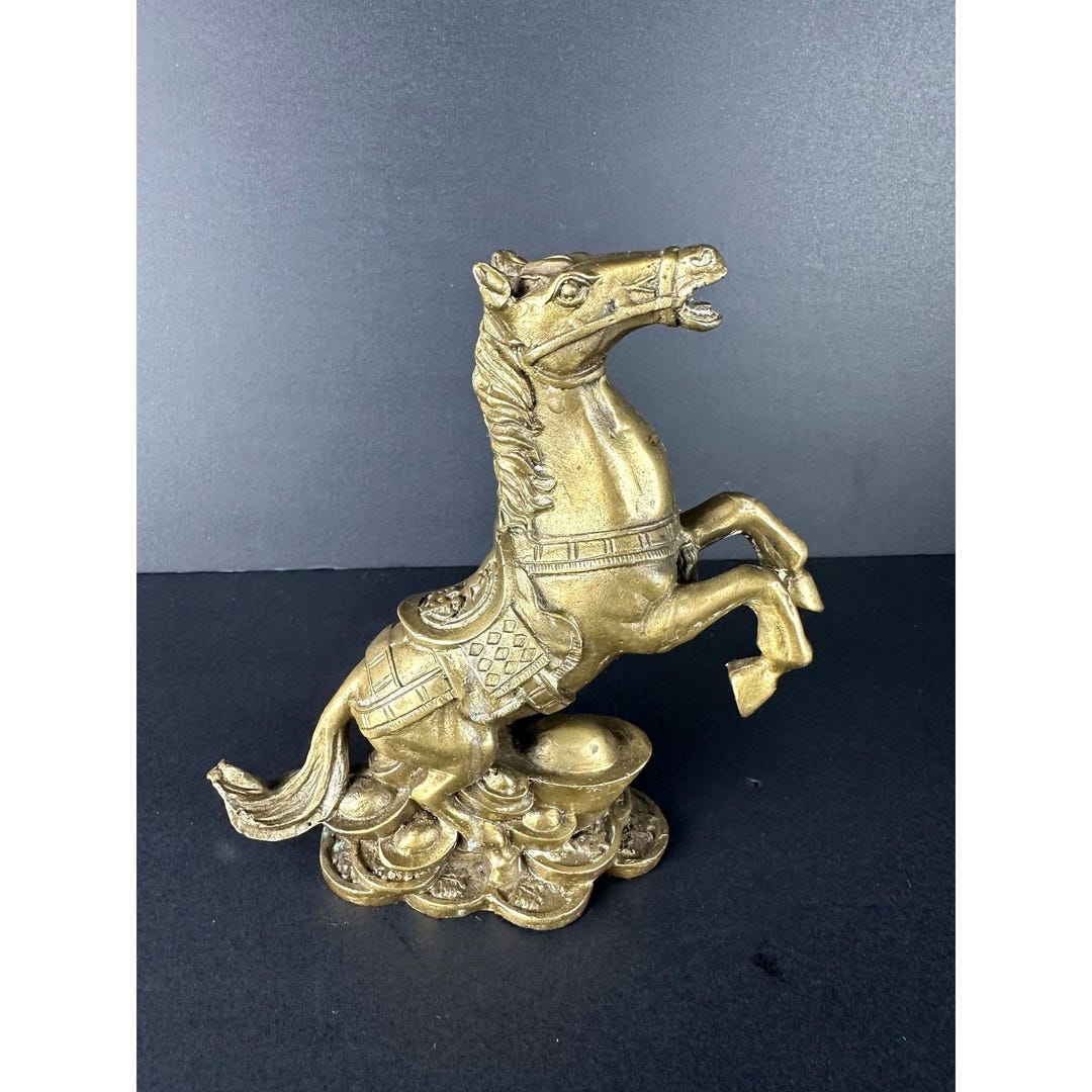 Diese goldene Pferdefigur aus Messing ist einfach wunderschön! Mit 5x5x2cm ist sie kompakt aber dennoch ein echter Hingucker. Jedes Detail ist sorgfältig poliert und zeigt außergewöhnliche Handwerkskunst.