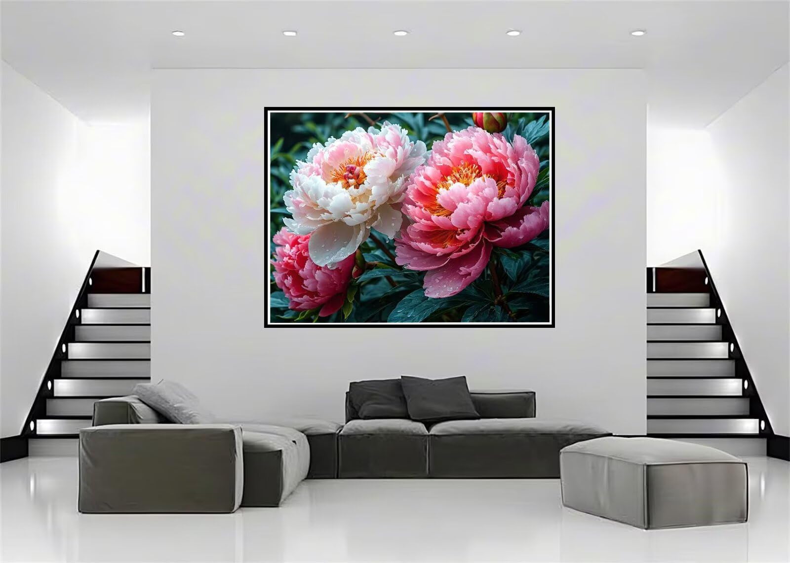 Boah, dieses Diamond Painting ist ja mal mega! Mit dem schönen Pfau und Pfingstrosen Motiv wird es ein echter Hingucker. 40x120cm groß - das gibt ein richtig imposantes Bild!