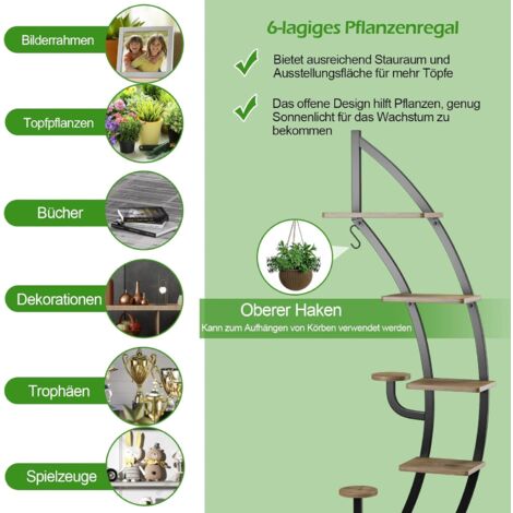 Verwandle deine Wohnung in einen Dschungel! Dieser 6-stufige Pflanzenständer in eleganter Schmetterlingsform ist ein echter Hingucker. Mit 185cm Höhe bietet er Platz für viele Pflanzen. Enthält 4 große und 8 kleine Metallgitter-Regale plus 4 Aufhängehaken. Der robuste Metallrahmen ist extrem stabil und langlebig. Verstellbare Füße für ebenen Stand, Wandbefestigung inklusive. Die Gitterregale sorgen für gute Drainage und sind leicht zu reinigen. Einfache Montage mit Flügelmuttern. Perfekt für Wohnzimmer, Balkon, Garten oder Büro. Zeige deine Blumentöpfe, hängenden Pflanzen oder auch Bücher und Deko-Artikel. Romantisch und praktisch zugleich!