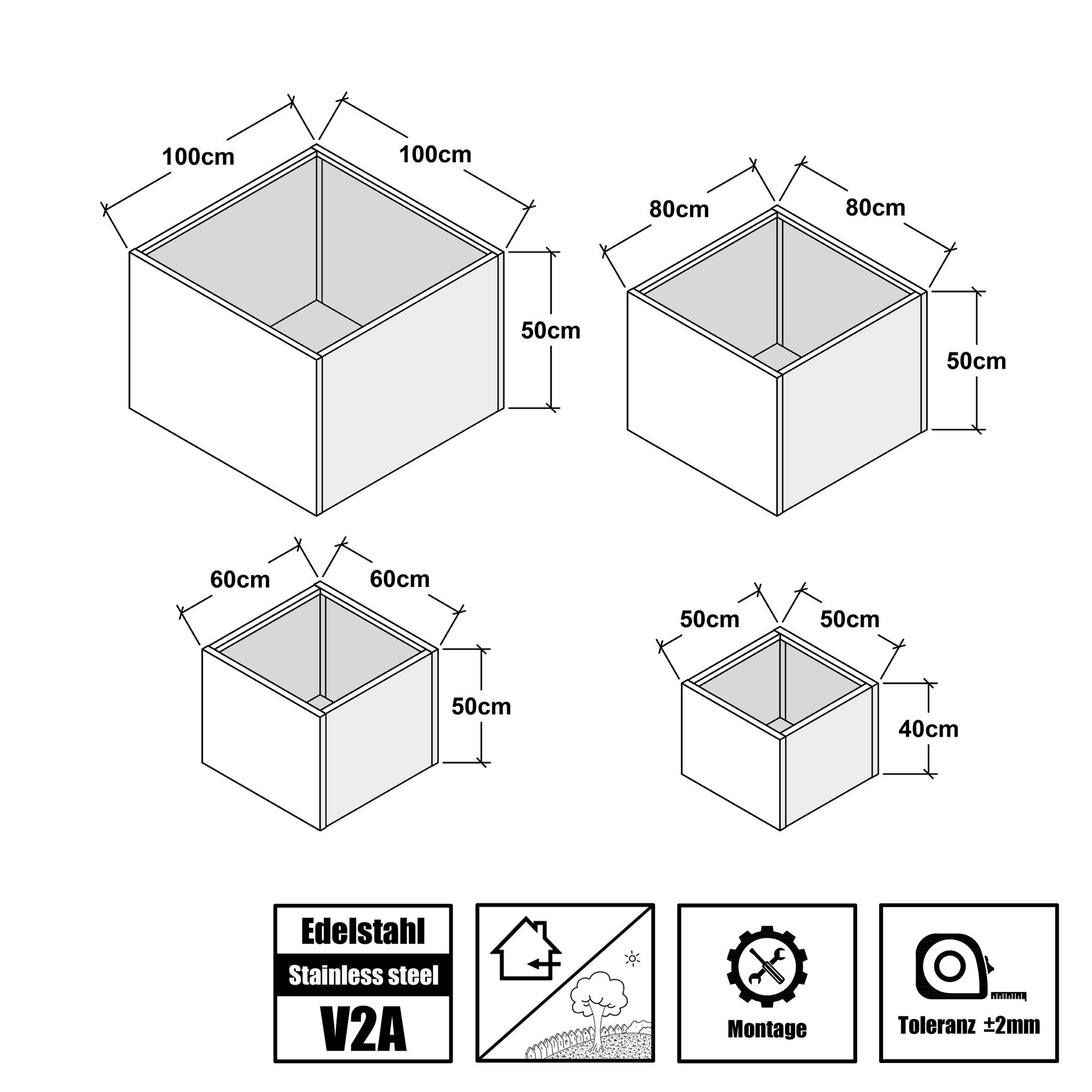 Köhko Designer Pflanzrahmen Edelstahl 100x100x50cm - Hochbeet Bausatz Für Innen & Außen
