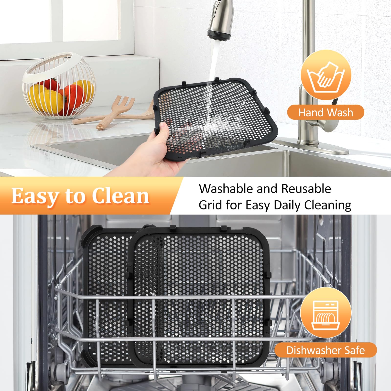 Die kleinen Löcher sorgen dafür, dass die Luft trotzdem gut zirkuliert und alles schön knusprig wird. Nach dem Gebrauch einfach in die Spülmaschine oder mit warmem Wasser abwaschen.