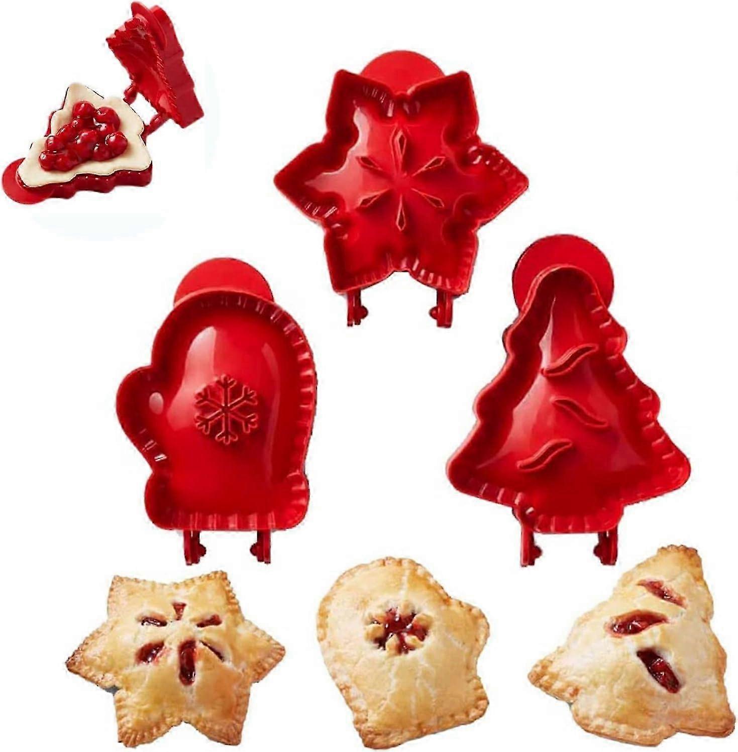 Backspaß in weihnachtlichen Formen! Dieses 3-teilige Set enthält praktische Pie-Formen als Weihnachtsbaum, Stern und Handschuh. Aus stabilem ABS-Material, leicht zu reinigen und langlebig. Einfach Teig einlegen, Füllung hinzufügen und zuklappen - perfekte Mini-Pies entstehen! Ideal für Weihnachtsbäckerei, Kindergeburtstage oder gemütliche Backabende. Maße: Baum 17x12cm, Handschuh 15,5x10cm, Stern 13,5x12,7cm. Mach deine Weihnachtsbäckerei zu einem besonderen Erlebnis mit diesen charmanten Formen!