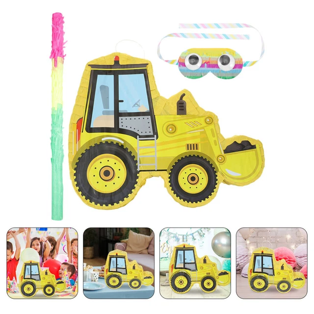 Wie cool ist denn diese Baustellen-Pinata?! In Bagger-Form, ca. 26,5x41x8 cm groß - ein absoluter Hit auf jedem Kindergeburtstag! Komplett mit Schläger und Augenmaske, einfach mit Süßigkeiten, kleinen Spielzeugen oder Konfetti befüllen. Die Kinder haben einen Riesenspaß, wenn sie abwechselnd mit verbundenen Augen versuchen, die Pinata zu knacken. Und wenn's dann endlich kracht - regnet es leckere Überraschungen! Aus Pappe, Papier und PVC, mit praktischer Aufhängeschlaufe. Perfekt für Mottopartys, Einschulungen oder einfach so. Aber Achtung: Ist ein Dekorationsartikel, kein Spielzeug, und kann bei Nässe abfärben. Aber der Spaß ist garantiert!