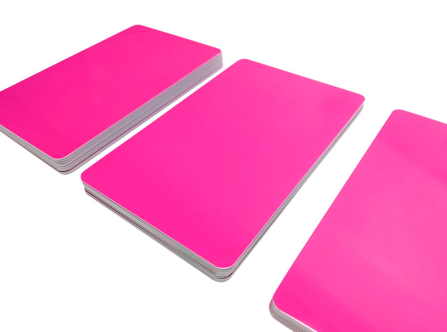Perfekt für deine individuellen Karten! Diese 50 hochwertigen Plastikkarten in Pink sind ideal für alle, die eigene Karten entwerfen wollen. Im Standard-Format 85,6x54mm mit 0,76mm Stärke und abgerundeten Ecken - genau wie EC- oder Kreditkarten. Beidseitig pink und blanko, bereit für deine kreativen Ideen. Made in Germany in Premium-Qualität. Du kannst sie mit speziellen Kartendruckern bedrucken - aber Achtung: Nicht für normale Tintenstrahldrucker geeignet! Super für Mitgliedskarten, Gutscheinkarten, Zugangskarten oder persönliche Visitenkarten. Die glatte Oberfläche nimmt Druck perfekt an und die Karten fühlen sich richtig hochwertig an. Verleihe deinen Projekten einen professionellen Look mit diesen qualitativ überzeugenden Blanko-Karten!