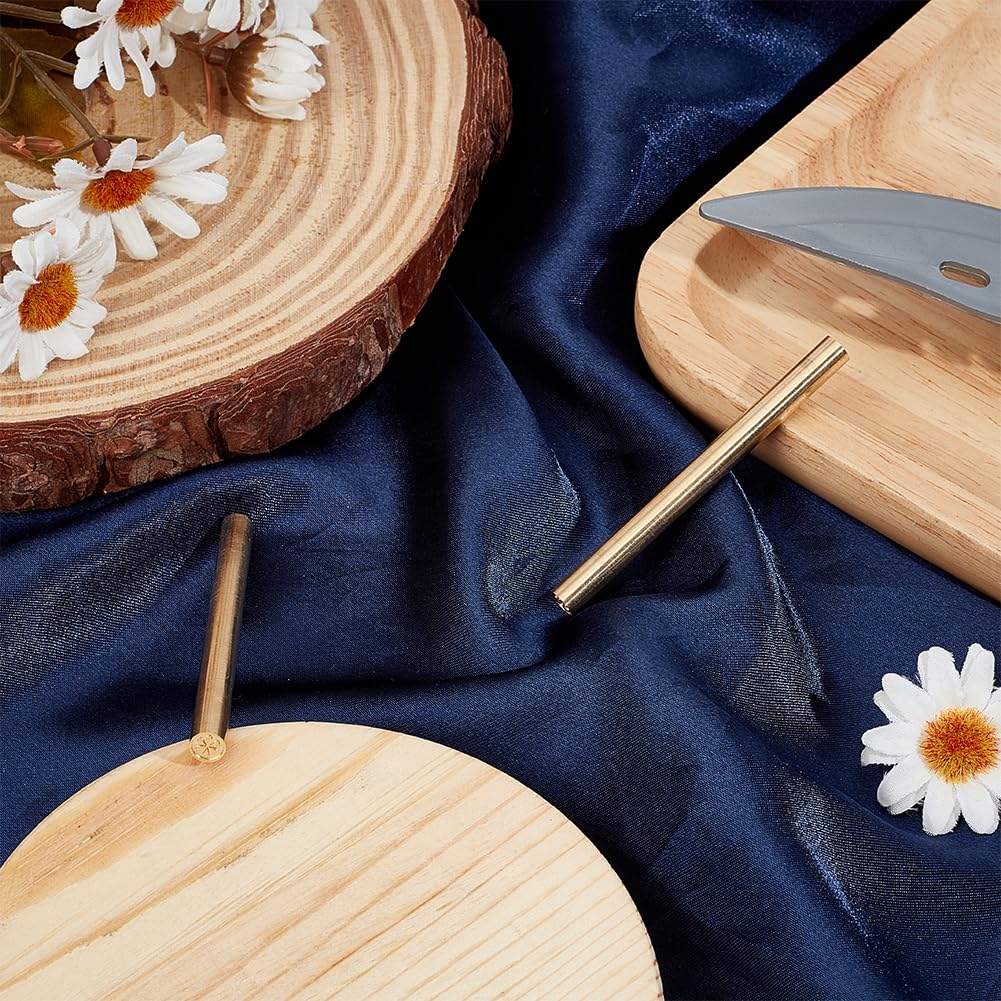 Verpasse deinen selbstgebauten Messern den letzten Schliff! Diese edlen Messing-Stifte mit goldenem Hirschmuster machen jedes Messer zum Unikat. Mit 6mm Durchmesser und 69mm Länge passen sie perfekt für die meisten Messergriffe. Aus hochwertigem Messing - robust und langlebig. Einfach in den vorgebohrten Griff stecken und festkleben. Die Stifte lassen sich sägen, schleifen und polieren für individuelle Anpassungen. Ideal für Küchenmesser, Jagdmesser oder Sammlerstücke. Das Hirsch-Motiv symbolisiert Naturverbundenheit und Handwerkskunst. Zwei Stück im Set - genug für mehrere Projekte. Damit werden deine selbstgebauten Messer zu echten Hinguckern! Perfekt für Messermacher und Holzhandwerker.