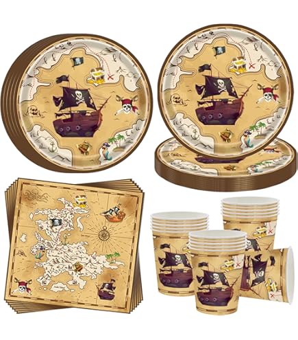 Ahoy, kleine Piraten! Dieses 60-teilige Set macht jede Kinderparty zum unvergesslichen Abenteuer. Enthalten sind 12 Piraten-Notizbücher, 12 Augenklappen aus weichem Filz, 12 Piratenflaggen zum Schwenken, 12 coole Schnapparmbänder und 12 Tattoo-Bögen mit verschiedenen Motiven. Alles was du brauchst für eine komplette Piraten-Mottoparty! Die Materialien sind kindgerecht und sicher - die Augenklappen sind weich, die Flaggen stabil und die Tattoos wasserfest. Perfekt für Kindergeburtstage, Kindergartenfeste oder als Mitgebsel nach der Schatzsuche. Einfach verteilen und die Kinder tauchen ein in die Welt der Piraten - mit Rollenspielen, Abenteuern und jeder Menge Spaß!