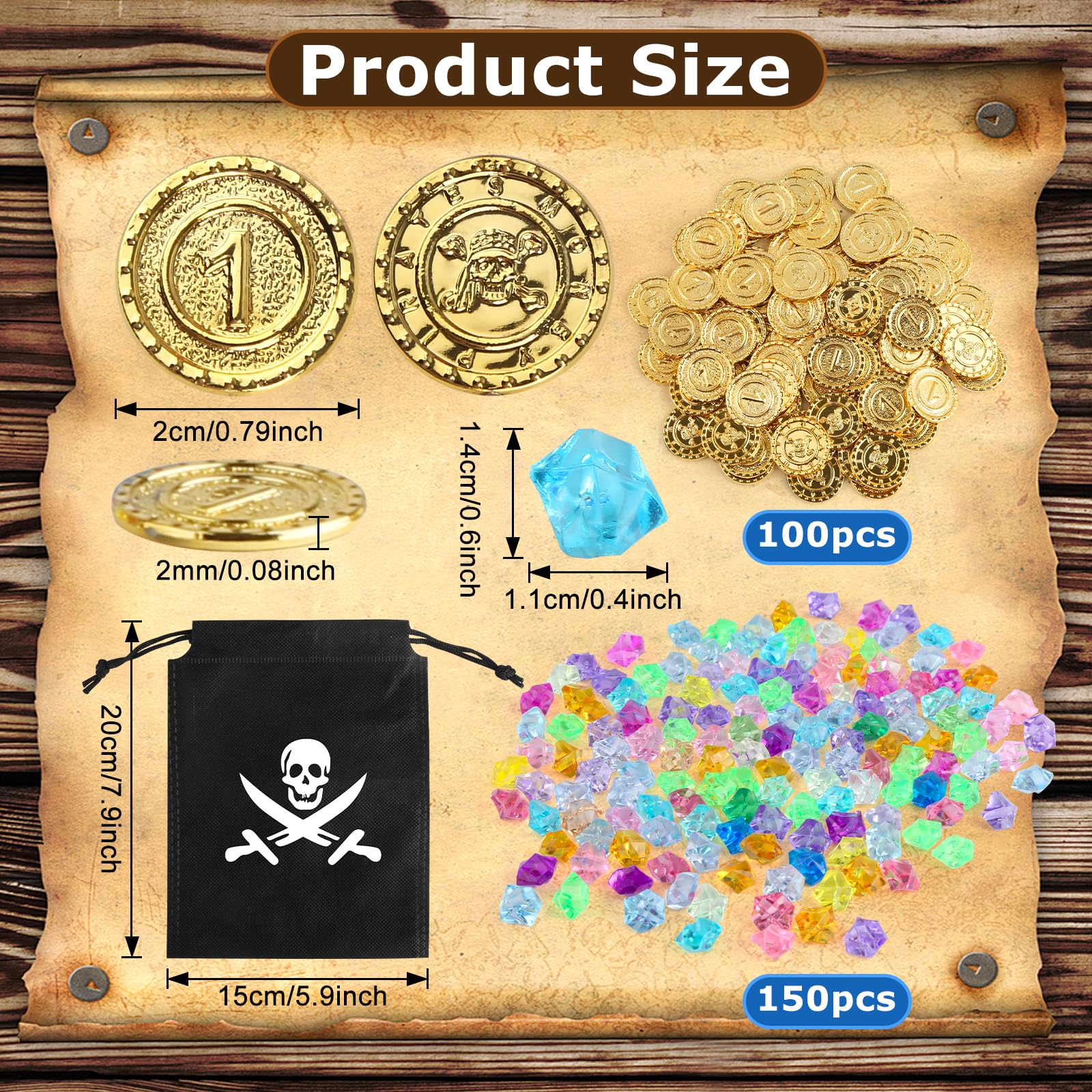 Ahoy, junge Piraten! Dieses Schatz-Set mit 320 Teilen ist der Hit für jede Piratenparty! Enthalten sind 160 goldene Münzen und 160 bunte Edelsteine aus hochwertigem Acryl-Kunststoff. Die Münzen haben coole Piratenschädel-Muster und die Edelsteine glänzen in allen Farben. Perfekt für Schatzsuchen, Geburtstagsfeiern, Halloween oder einfach zum Spielen. Ob drinnen oder draußen - damit wird jedes Abenteuer zum Erlebnis! Die Stücke sind robust und langlebig, also perfect für kleine Piratenhände. Einfach in die Schatzkiste packen und die Suche kann beginnen! Super als Mitgebsel oder für die Dekoration. Damit wird deine Piratenparty unvergesslich! Einfach bestellen und staunen, wie viel Spaß 320 Teile Piratenschatz machen können!