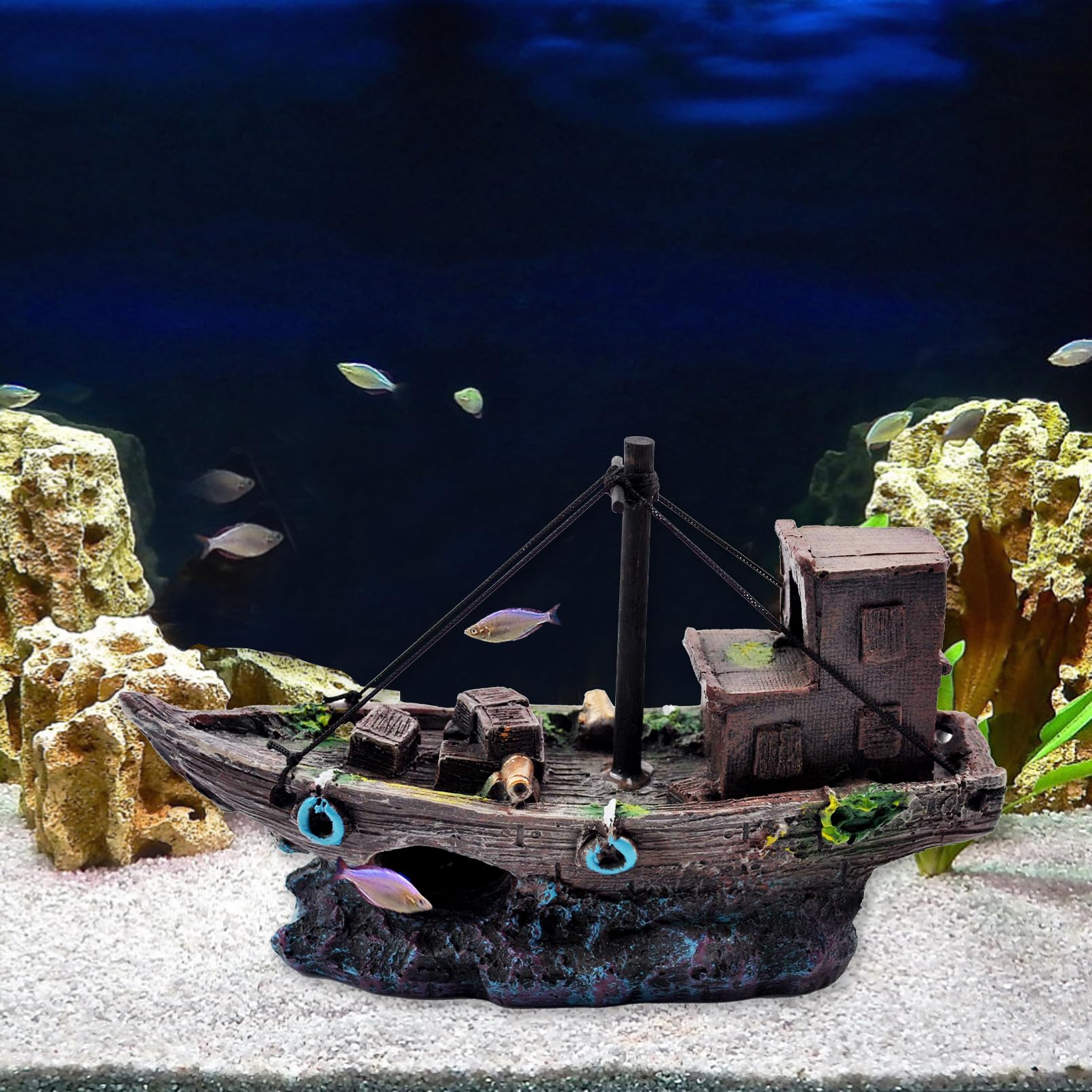 3er Set Piratenschiff Aquarium Deko - Schiffswrack Ornamente Aus Harz