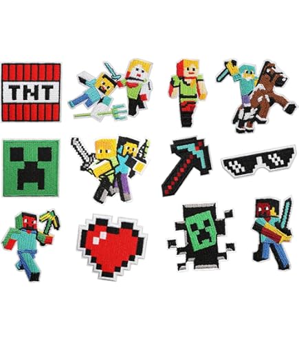 Coole Pixel-Designs für echte Gamer! Dieses Set mit 8 Bügelflicken bringt Gaming-Style auf deine Kleidung. Die lebendigen Farben und retro Pixel-Motive sehen einfach mega aus!