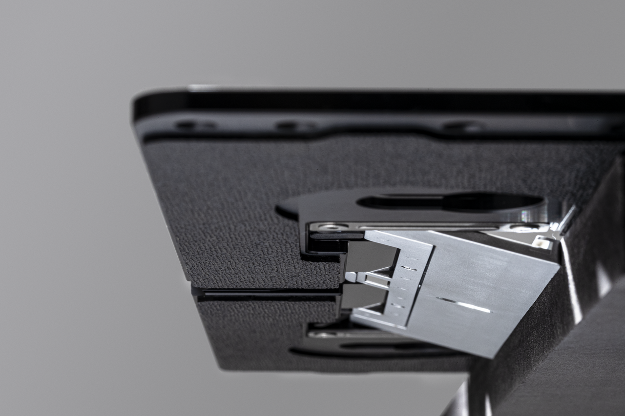 Mit 160x120mm Fräsfenster hast du genug Platz zum Arbeiten. Die flachen Zwingenköpfe ermöglichen Fixierung in jeder Position.