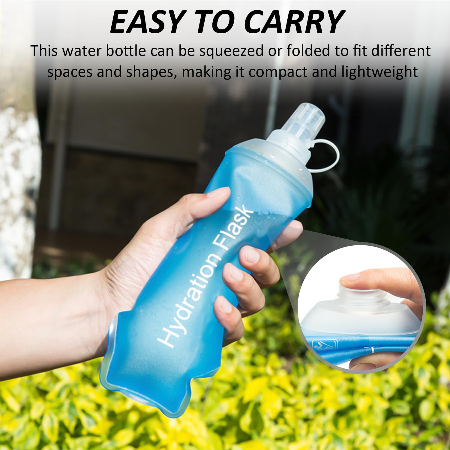 Perfekt für unterwegs! Diese faltbare Wasserflasche ist dein neuer bester Freund beim Sport, auf Reisen oder einfach im Alltag. Wenn sie leer ist, klappst du sie einfach zusammen und steckst sie in die Tasche - kaum größer als ein Portemonnaie. Mit 500ml Fassungsvermögen hast du immer genug zu trinken dabei. Der Karabiner ist super praktisch - einfach an den Rucksack hängen und los geht's! Das TPU-Material ist langlebig und geruchlos - kein komischer Plastikgeschmack im Wasser. Die große Öffnung macht das Reinigen und Befüllen super einfach. Und die Aufhängeöse ist perfekt zum Trocknen. Ob beim Wandern, Radfahren, im Fitnessstudio oder auf Reisen - diese Flasche ist immer dabei. Umweltfreundlich, weil du keine Einwegflaschen mehr kaufen musst. Und sie hält sowohl kalte als auch warme Getränke aus. Einfach praktisch und umweltschonend zugleich!