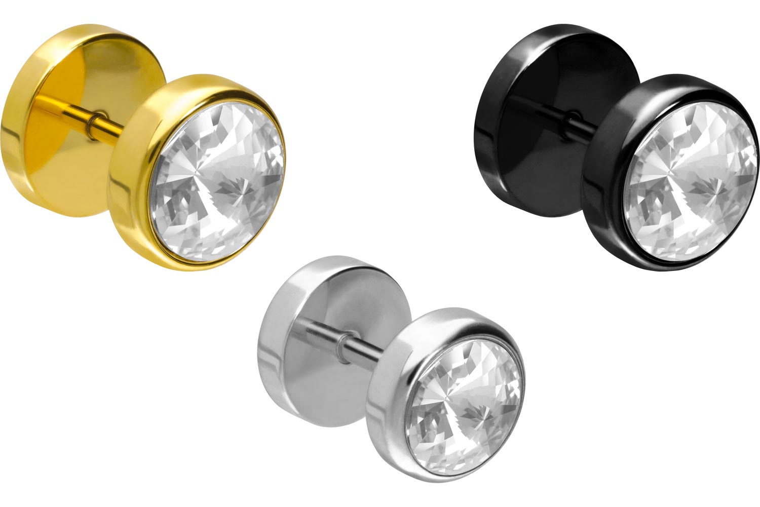 Hey Piercing-Fans! Diese Fake Plugs sehen aus wie echte Tunnel, sind aber viel praktischer! Perfekt für alle, die den Tunnel-Look lieben, aber nicht die Ohrlöcher dehnen wollen. \\n\\nAus hochwertigem 316L Chirurgenstahl, schwarz eloxiert für einen edlen Look. Mit glitzerndem Kristall-Würfel als Highlight - einfach umwerfend! \\n\\nTechnische Daten: \\n- Material: 316L Chirurgenstahl \\n- Stablänge: 6 mm \\n- Stabstärke: 1,2 mm \\n- Würfelgröße: 6x6 mm \\n- Verschluss: 5x12 mm \\n- Farbe: Schwarz \\n\\nPerfekt für: \\n- Tägliches Tragen \\n- Besondere Anlässe \\n- Partys und Events \\n- Als Geschenk \\n\\nVon piercingfaktor - bekannt für qualitative Piercing-Produkte. Im Shop findest du noch mehr Ohrringe, Ohrstecker, Plugs und Tunnel. \\n\\nFür alle, die stylischen Ohrschmuck lieben: Einfach einsetzen und bewundern lassen! Sieht aus wie echter Tunnel - ohne Dehnung!