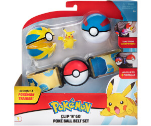Pokémon-Fans aufgepasst! Dieses offizielle Clip and Go Set von Jazwares ist perfekt für unterwegs. Enthält eine super detaillierte Machollo Figur (ca. 5 cm groß), zwei Pokébälle (Wiederball und Timerball) und einen praktischen Gürtelclip. Die Pokébälle öffnen sich hinten - da kannst du die Figur sicher verstauen. Dann einfach den Ball am Gürtel befestigen und schon kannst du deine Pokémon-Sammlung überall mit hinnehmen. Perfekt für Kinder ab 4 Jahren. Die Qualität ist echt gut - nicht so billiges Plastik, sondern robust und kindgerecht. Super als Geschenk für kleine Pokémon-Trainer! Du kannst zusätzliche Figuren und Bälle separat kaufen und deine Sammlung erweitern. Ideal für Rollenspiele, zum Tauschen mit Freunden oder einfach zum Sammeln. Macht richtig Spaß und fördert die Fantasie! Das Set ist offiziell lizenziert - also mit original Pokémon-Designs. Dein Kind wird begeistert sein!