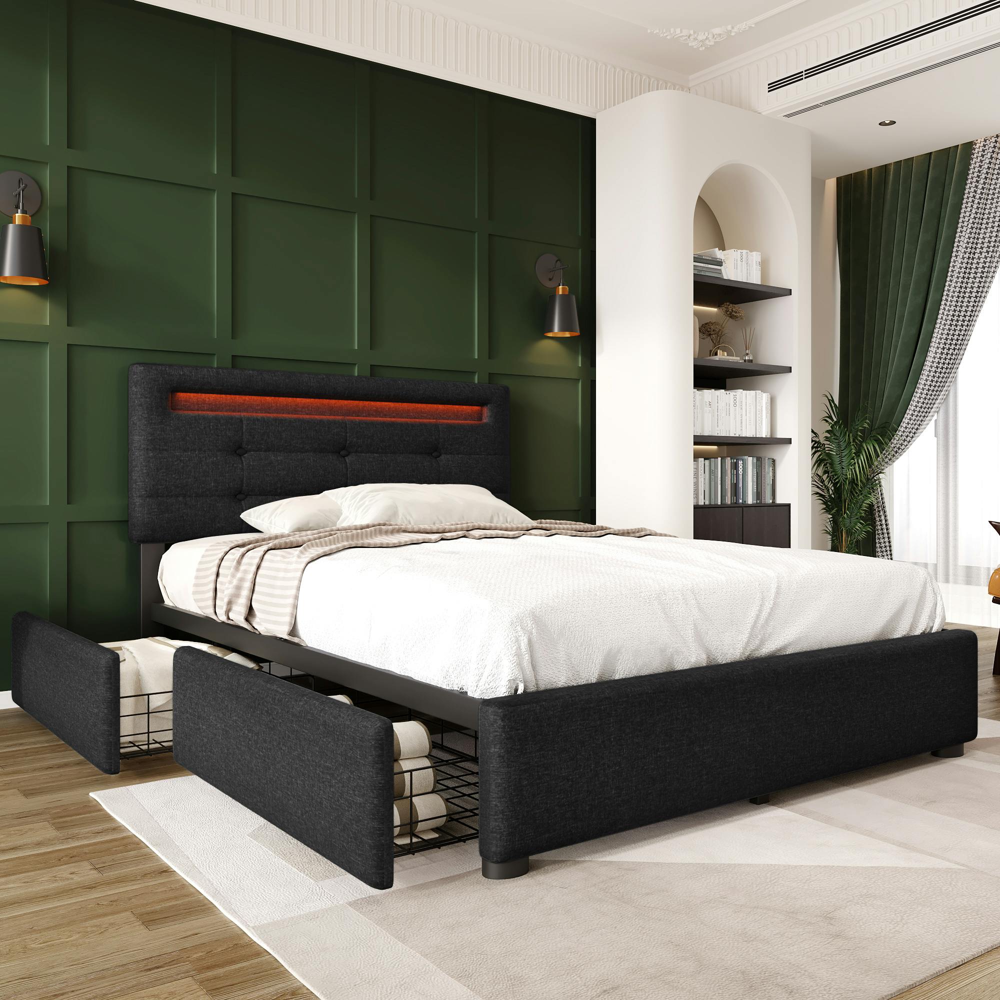 Wow, dieses Bett hat alles! Das Merax Polsterbett in modernem Grau verwandelt jedes Zimmer in eine Wohlfühloase. Mit integrierter LED-Beleuchtung im Kopfteil kannst du je nach Stimmung die Farbe wechseln - per Fernbedienung! Zwei praktische Schubladen bieten jede Menge Stauraum für Bettwäsche oder Kleidung. Das höhenverstellbare Kopfteil (16,5-26cm) passt sich perfekt deiner Matratze an. Maße: 208x100,5x93,5-103cm, Liegefläche 90x200cm. Hergestellt aus Massivholz, Metall und strapazierfähigem Leinenmaterial. Der Lattenrost hat 3 Stützfüße und trägt bis zu 300lbs (136kg). Rutschfeste Streifen verhindern, dass die Matratze verrutscht. Einfache Montage mit bebilderter Anleitung - das Bett wird in 2 Paketen geliefert, die an verschiedenen Tagen ankommen können. Die dekorativen Zierknöpfe am Kopfteil geben dem Bett einen richtig edlen Look. Perfekt für Jugendzimmer, Gästezimmer oder kleine Schlafzimmer!