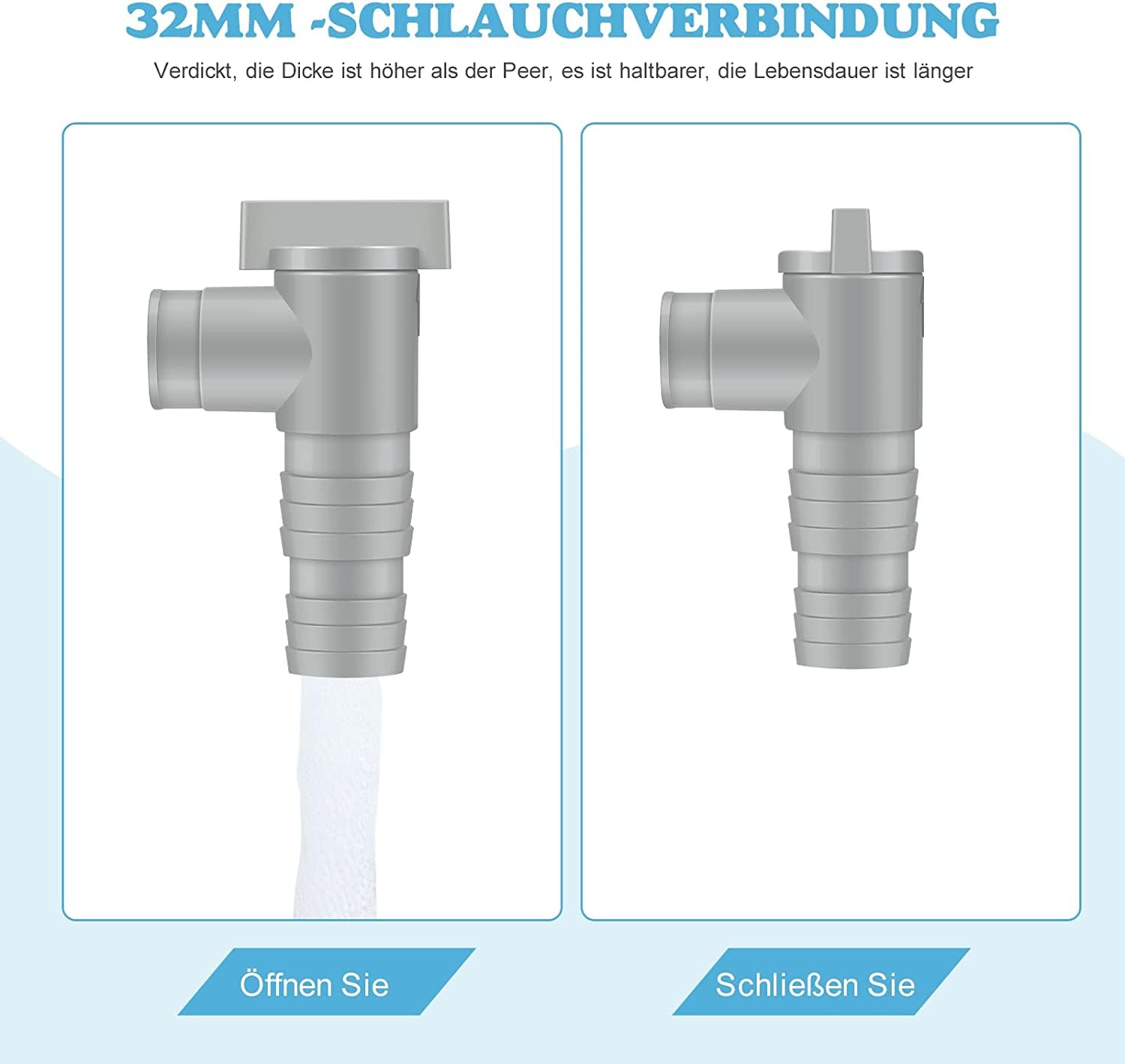 Endlich Pool-Wartung ohne Stress! Dieses Set mit 2 Absperrhähnen und 4 Edelstahl-Schlauchklemmen macht dir das Leben leichter. Speziell für 32mm Pool-Schläuche geeignet, aber passt auch an 38mm. Aus hochwertigem PP-Material - hält ewig und macht auch kalte Temperaturen nichts aus. Einfache Montage: Schlauch dran, Klemme fest, fertig! Dreh den Schalter auf 'Open' oder 'OFF' - simpler geht's nicht. Perfekt für Wartungsarbeiten am Filter oder wenn du Teile austauschen musst. Kleiner Tipp: Wenn das System nicht angeschlossen ist, kann der Hahn die Kappe nicht ersetzen. Und bei geschlossenem Ventil können minimal Tropfen austreten - völlig normal! Mach deine Pool-Pflege zum Kinderspiel und genieße den Sommer ohne Sorgen.