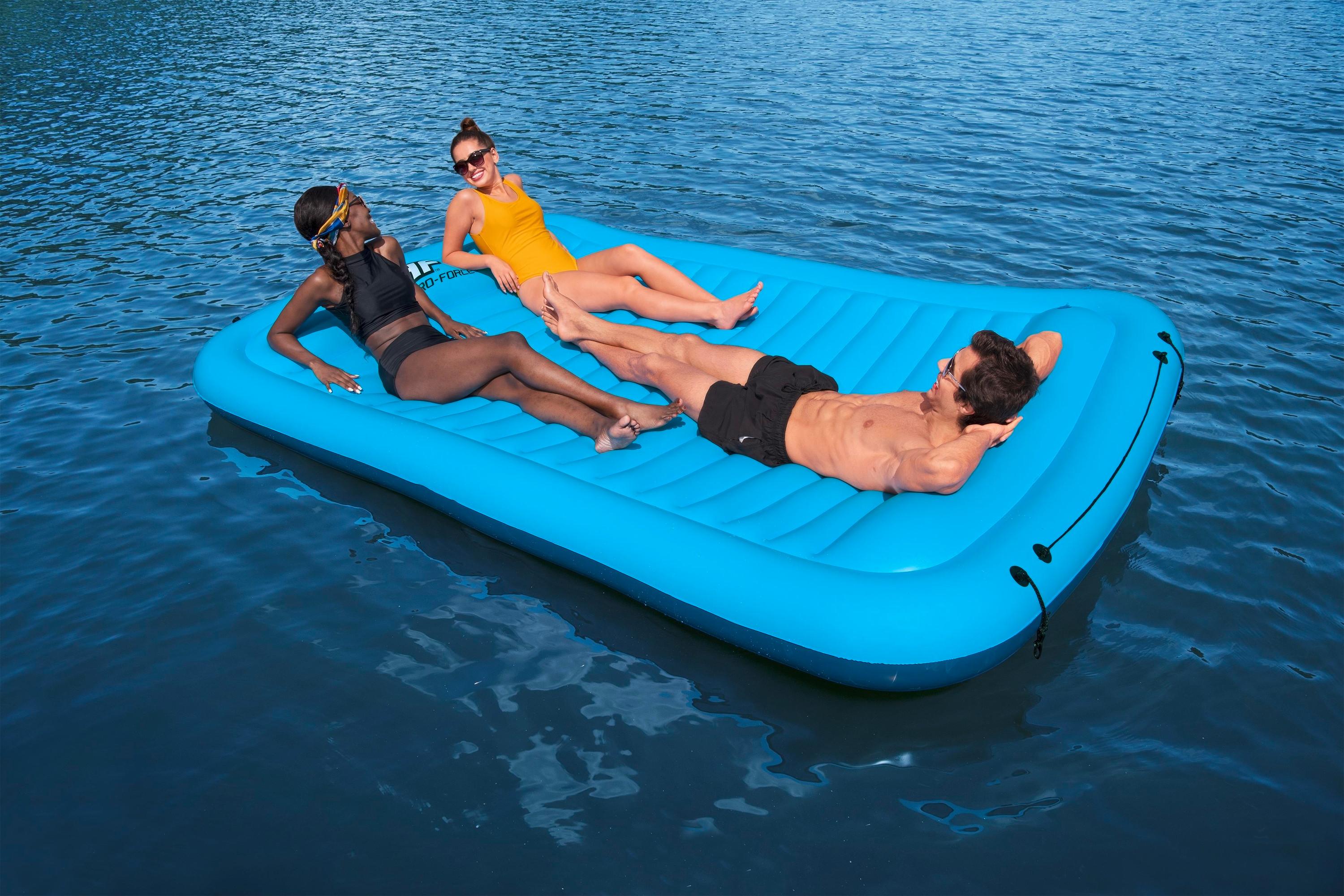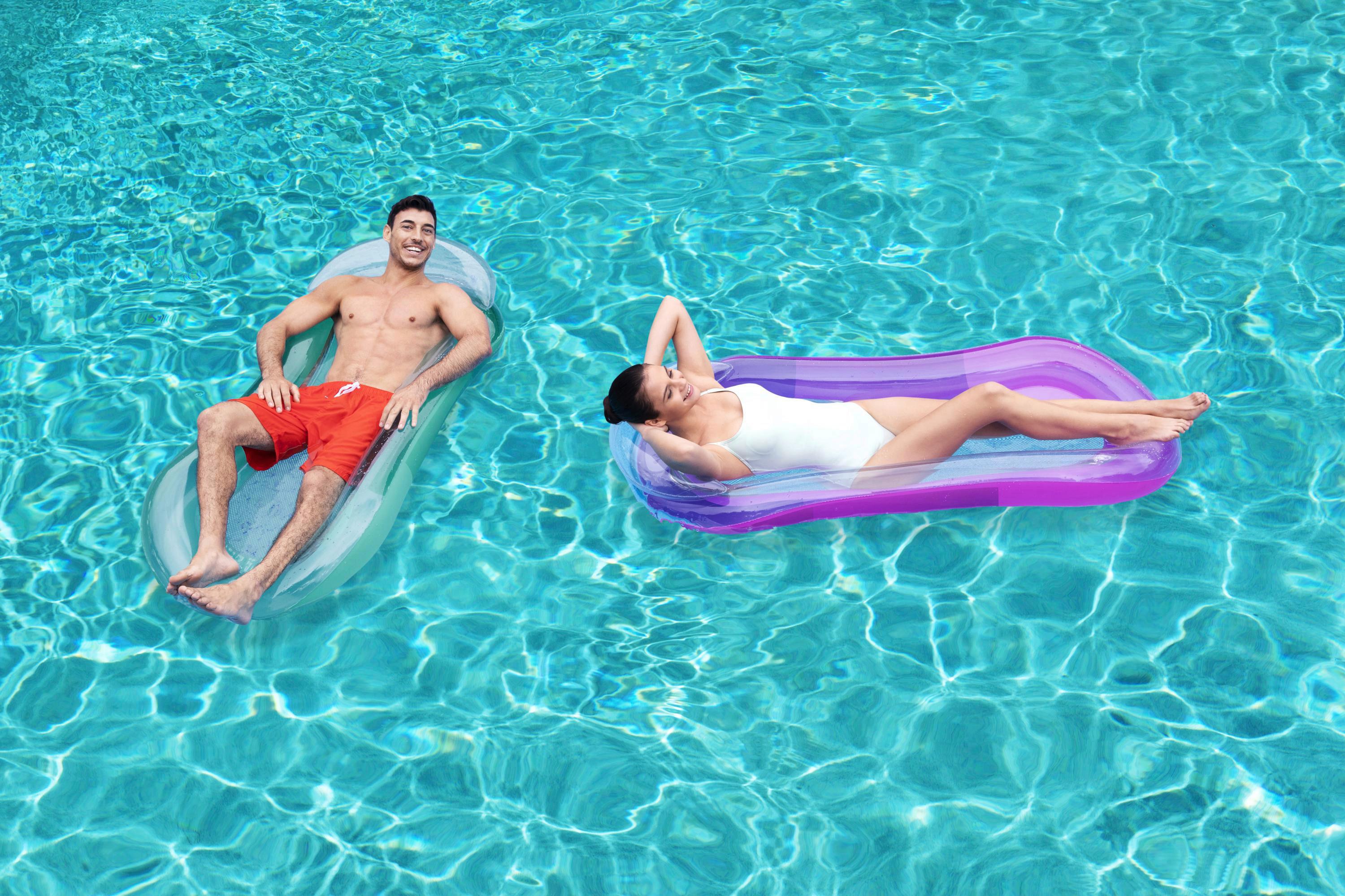 Diese Pool-Schwimmreifen sind der absolute Hit für den Sommer! Im 2er-Set mit Maßen 61x40x33cm (BxLxH) - perfekt für Erwachsene bis 136kg. Das geniale 2-in-1-Design: Außen weicher, atmungsaktiver Stoffbezug der super angenehm auf der Haut liegt und schnell trocknet. Innen eine stabile Luftkammer mit praktischen Ventilen zum einfachen Aufblasen. Viel bequemer als normale Plastik-Liegen! Mit Kopfstütze und Körperteil für perfekte Entspannung im Wasser. Das tropische Blättermuster sieht einfach urlaubsreif aus. Zusammenklappbar und leicht zu transportieren - ideal für Pool, Meer, Strand, See oder Fluss. Ob alleine oder zu zweit - mit diesen Schwimmern wird jeder Tag am Wasser zum puren Urlaubsfeeling. Einfach aufblasen, ins Wasser lassen und den Sommer genießen!