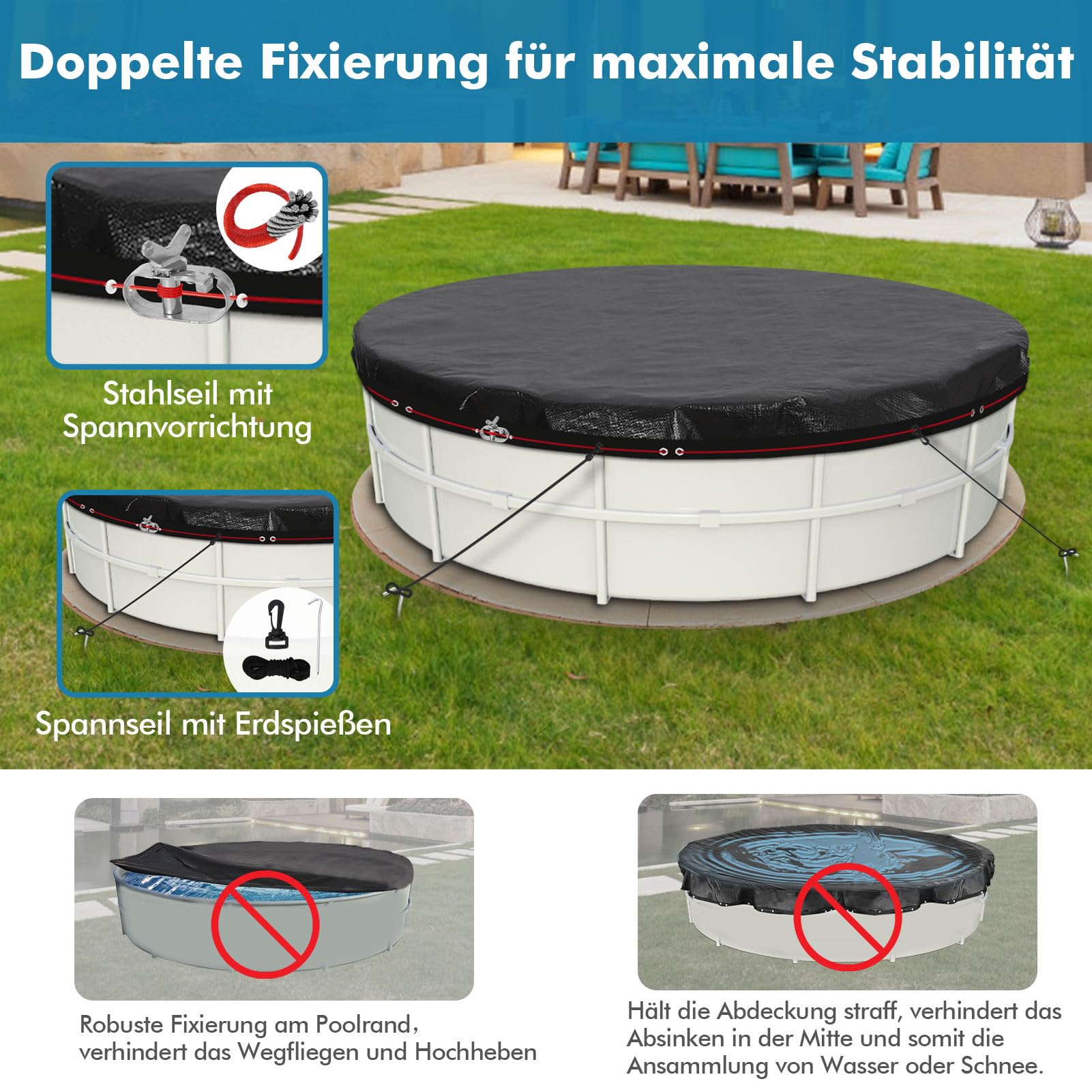 Poolabdeckung Rund 750cm - 2-in-1 Winterabdeckung Mit Drahtseil & Spanner