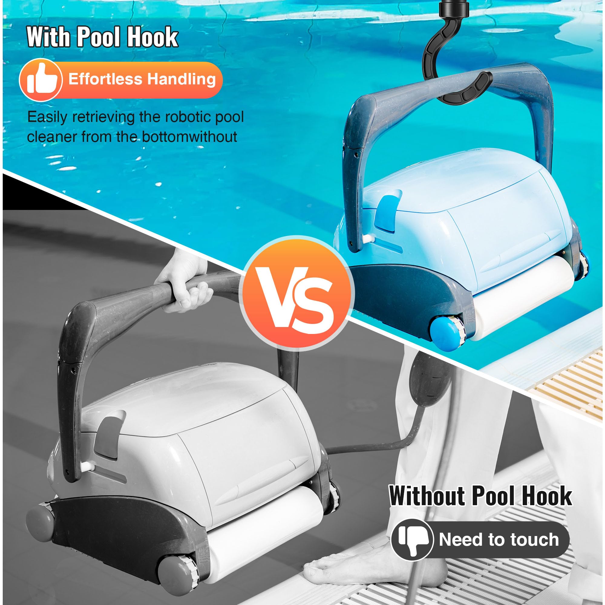 Endlich ne ordentliche Lösung für deinen Poolroboter! Dieser Haken von NIEEKRUN ist total praktisch - einfach an deiner Poolstange befestigen und schon kannst du den Reiniger easy aus dem Wasser heben. Kein Bücken mehr, kein Gefummel! Aus robustem ABS-Material hält der Haken was aus und passt auf die meisten Standard-Poolstangen. Mit 20,3 cm Länge und 2,54 cm Innendurchmesser ist er ideal für fast alle Poolroboter, egal ob kabelgebunden oder kabellos. Super einfach zu montieren, ohne Werkzeug. Wenn du ihn nicht brauchst, nimmst du ihn einfach ab und verstaut ihn platzsparend. So hast du immer alles griffbereit und dein Poolbereich bleibt schön aufgeräumt. Ein muss für jeden Poolbesitzer!
