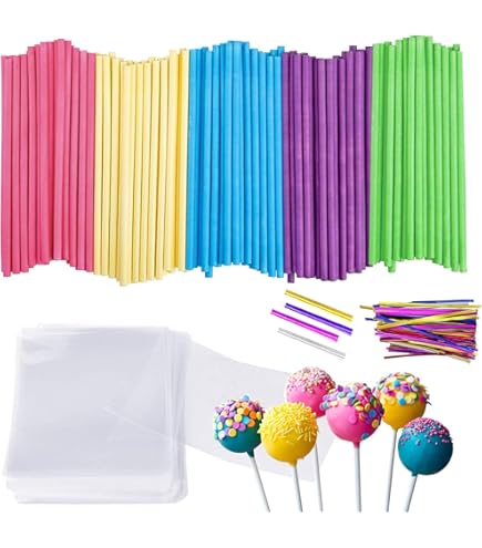 Hey Baker, dieses Cake Pop Set ist genau das, was du brauchst! 300 Teile - also 100 Stiele, 100 Tütchen und 100 Bindedrähte. Alles lebensmittelecht und super praktisch. Die Stiele sind 10cm lang, perfekt für deine Cake Pops. Einfach die Kugeln formen, aufstecken und in die transparenten Tütchen packen - mit den bunten Bindedrähten verschließen und fertig! Sieht total professionell aus und ist super für Geburtstage, Hochzeiten oder einfach so. Deine Gäste werden begeistert sein!
