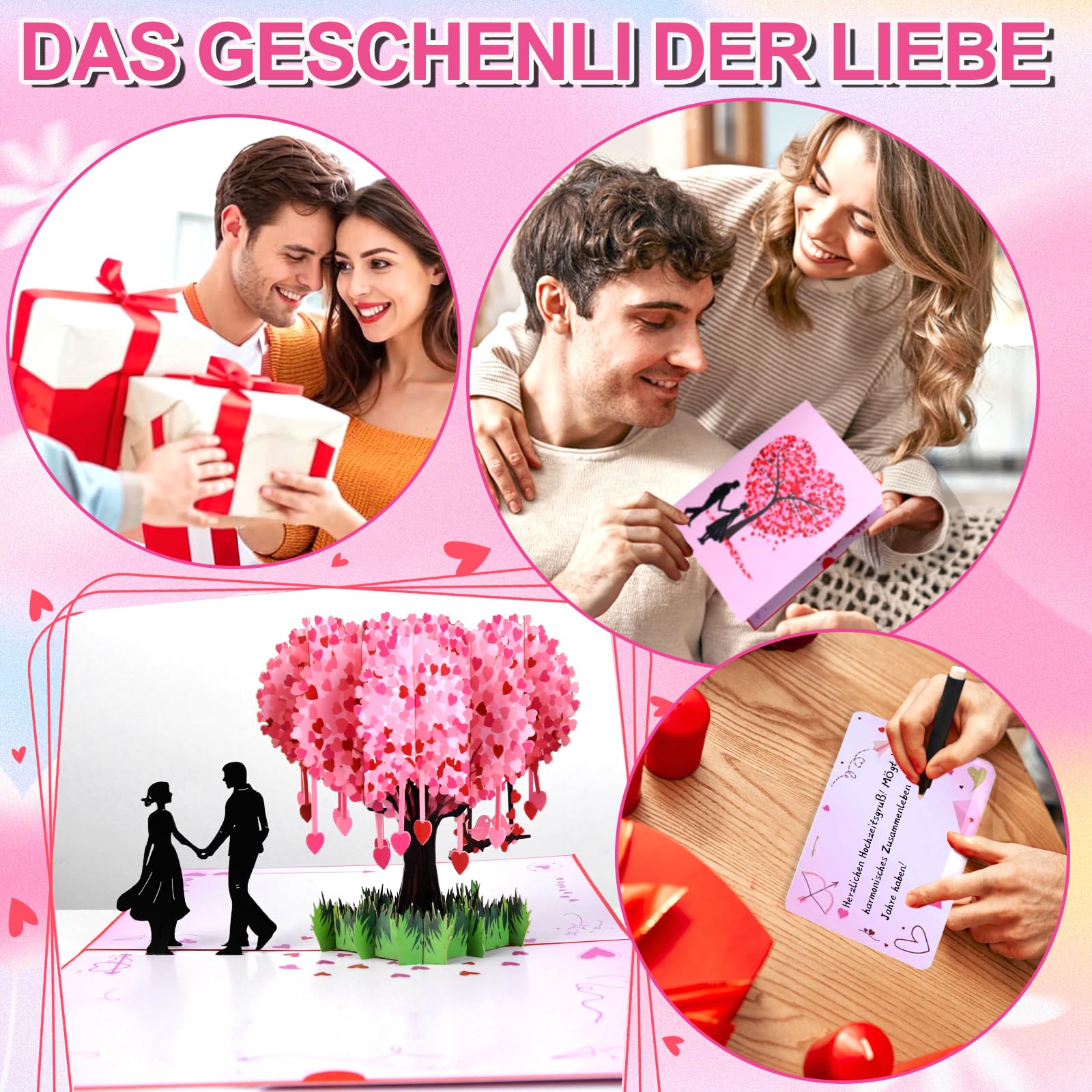 Wow, diese 3D-Pop-Up-Karte ist ja der absolute Hammer für romantische Anlässe! Sobald du sie öffnest, entfaltet sich ein wunderschöner Liebesbaum mit Herzen im beeindruckenden 3D-Effekt. Jede Karte ist liebevoll handgefertigt und lasergeschnitten - da steckt echte Handarbeit drin! Aus hochwertigem italienischem Spezialpapier gefertigt, das maximale Stabilität garantiert und sich nicht wellt. Mit den Maßen 20x15cm ist sie perfekt für deine persönlichen Grüße - ein extra Blatt für Notizen ist inklusive. Ob zur Hochzeit, zum Valentinstag, Jahrestag oder einfach als Liebesbeweis - diese Karte berührt garantiert jedes Herz. Der romantische Liebesbaum mit den tanzenden Figuren symbolisiert blühende Liebe und gemeinsame Glücksmomente. Inklusive passendem Umschlag, sodass sie perfekt als Geschenk ankommt. Mach deine Glückwünsche unvergesslich mit dieser außergewöhnlichen Karte!
