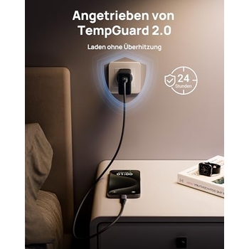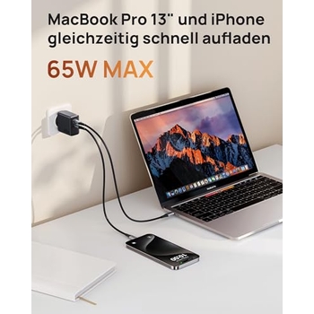 USB-C Ports mit je 20W, USB-A Ports mit je 18W. Kompatibel mit iPhone 14/13/12, Samsung Galaxy, iPad Pro und vielen mehr. Spart 75% Ladezeit im Vergleich zu Standard-Ladegeräten.