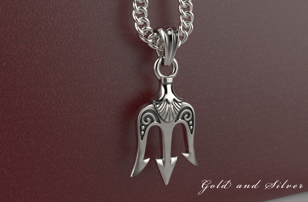 • Poseidon Dreizack Halskette 925 Silber - Griechisches Amulett Für Männer