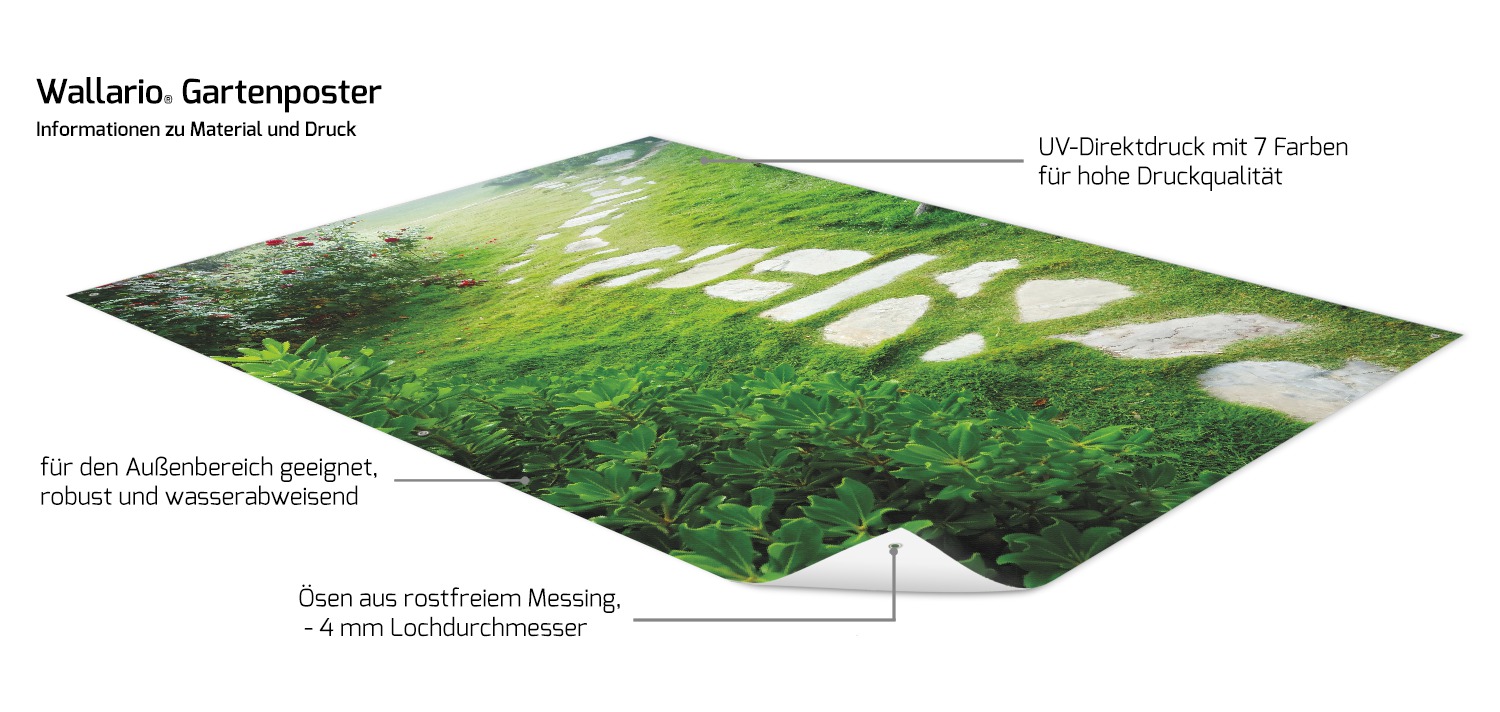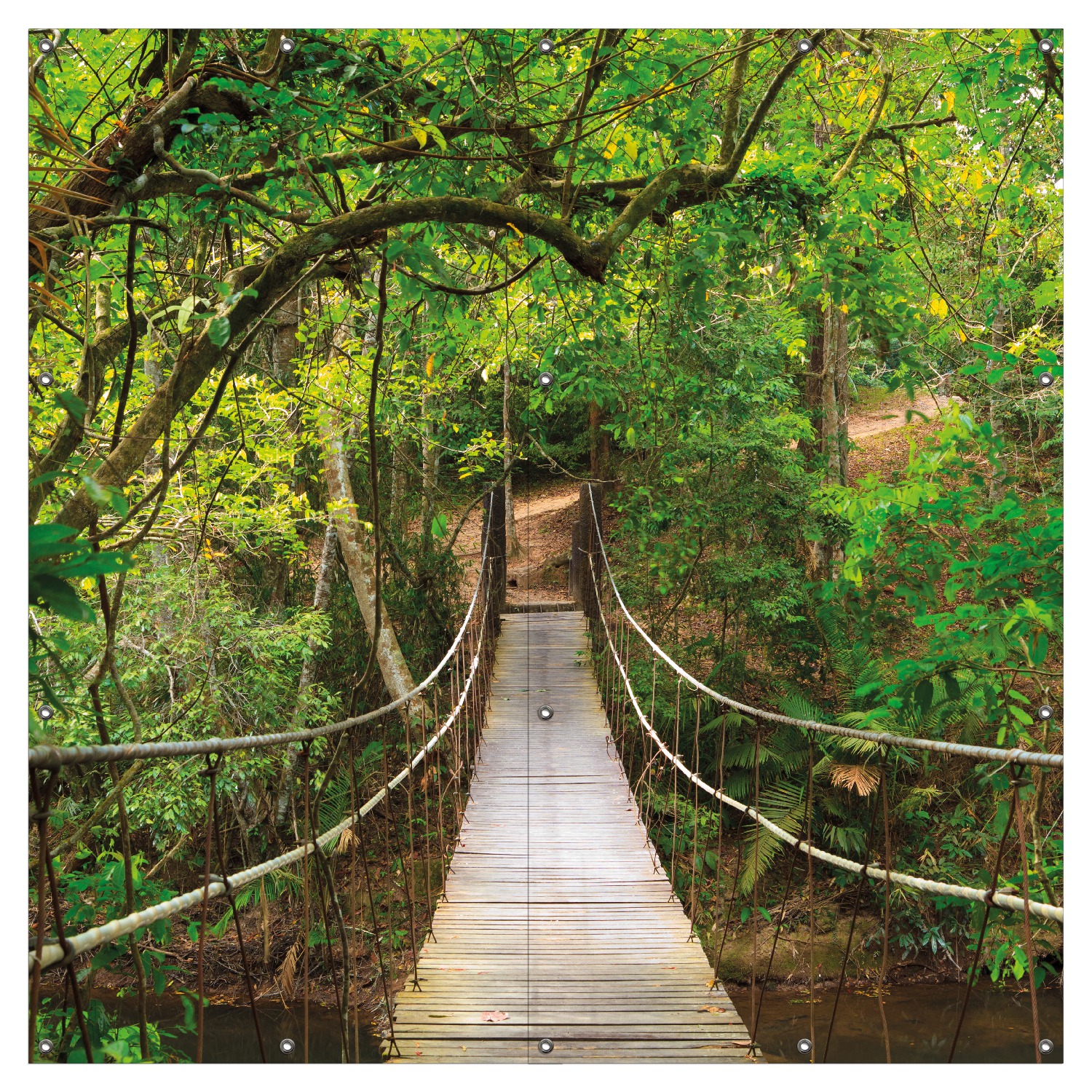 Wow, dieses Outdoor-Poster bringt echten Dschungel-Flair in deinen Garten! Mit dem Motiv einer geheimnisvollen Hängebrücke im grünen Urwald verwandelst du deine Terrasse oder deinen Balkon im Handumdrehen in eine tropische Oase. Das Besondere: Das Poster ist aus robustem Kunststoffmaterial gefertigt und die Farben sind komplett witterungsbeständig - da macht dir Regen oder starke Sonne nichts aus! Bereits mit rostfreien Metallösen ausgestattet, kannst du es sofort aufhängen. Perfekt für Zäune, Sichtschutzwände oder als Blickfang an der Hauswand. Und falls dir das Motiv nicht gefällt: Wir können dir auch ein individuelles Poster mit deinem eigenen Foto drucken! Übrigens: Die Größe von 60x90 cm ist ideal, um richtig zu wirken, ohne zu aufdringlich zu sein. Made in Germany - da weißt du, was du kriegst!