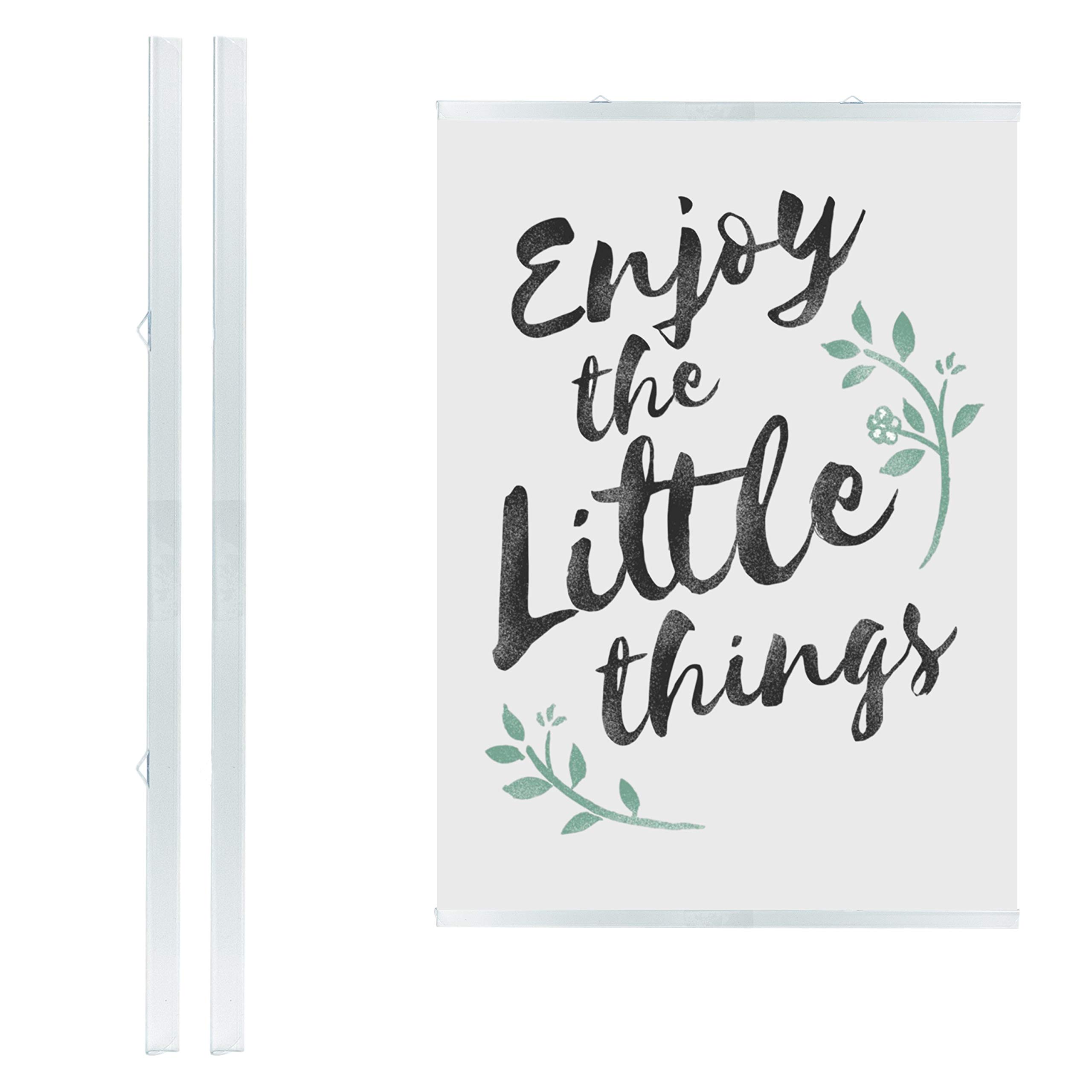 Gut zu wissen:• Lieferumfang: 4x Posterleisten (je 40cm) + 8x Clips• Material: Hochwertiges PVC• Für Wand- oder Deckenmontage• Passt für Poster bis ca. 3mm Stärke