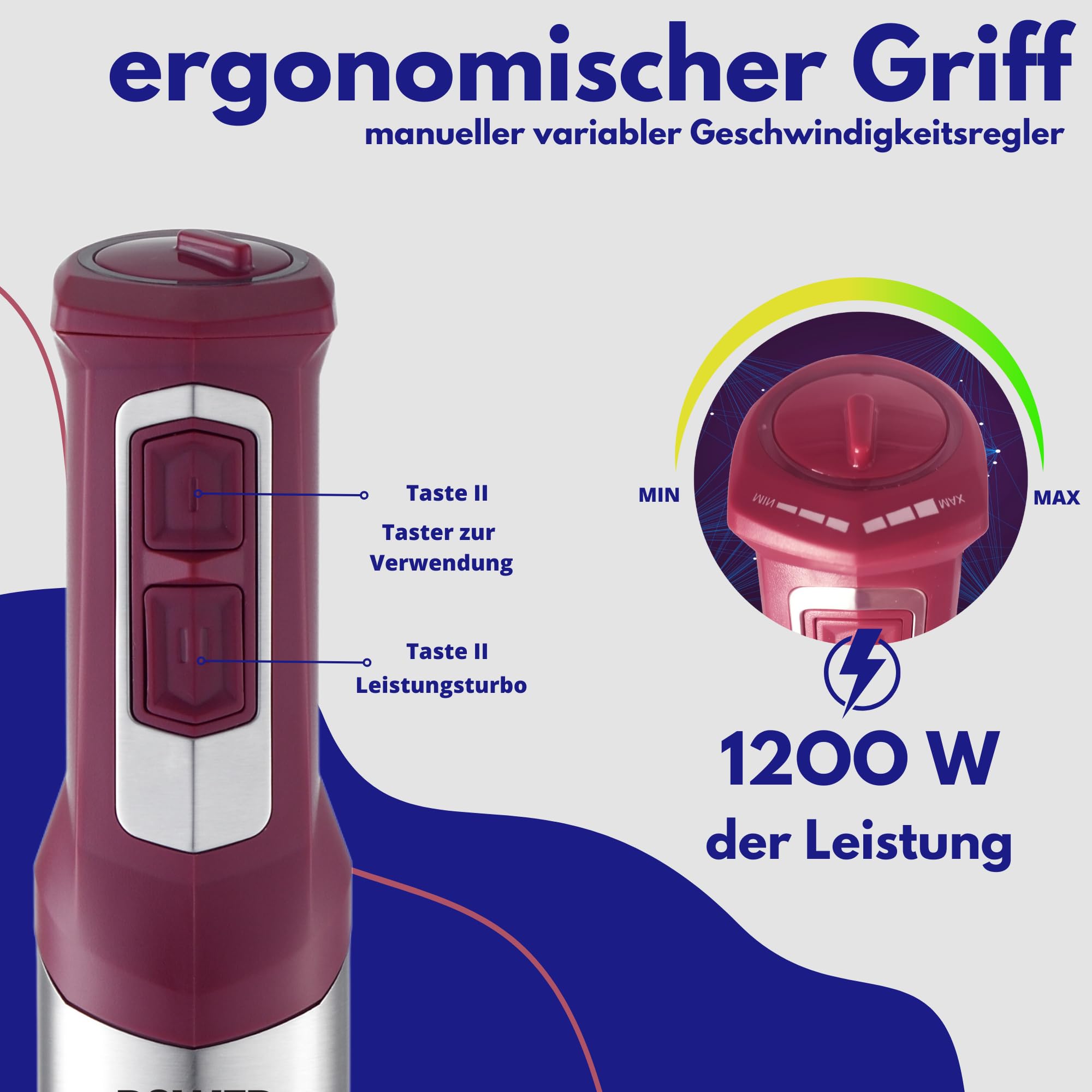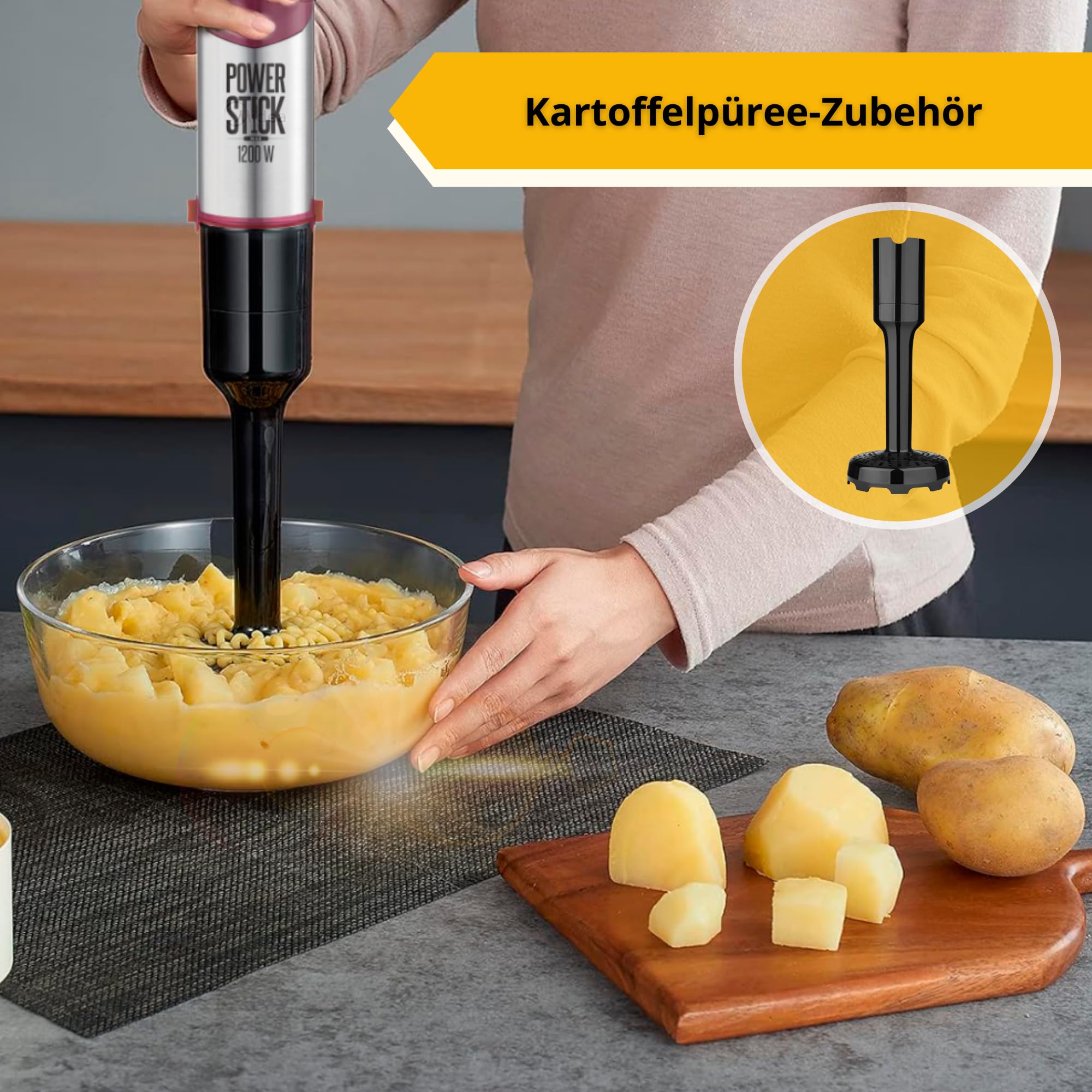 Boah, dieser Handmixer hat richtig Power! Mit 1200 Watt Watt Leistung püriert der alles, was du ihm vorsetzt - von harten Karotten bis zu cremigen Suppen. Die Titan-Klingen bleiben ewig scharf und durch das 3D-Schneidesystem wird alles superfein. Besonders praktisch ist der Turboknopf, wenn's mal schnell gehen muss. Und das Einrast-System ist genial - einfach Click und die Teile sind dran oder ab. Kein Gefummel mehr! Der Spritzschutz sorgt dafür, dass deine Küche sauber bleibt. Ob Smoothies, Babynahrung oder Soßen - mit diesem Mixer wird alles zum Kinderspiel. Das Set kommt komplett mit verschiedenen Aufsätzen, sodass du für jede Küchenarbeit gerüstet bist. Die Reinigung ist auch supereinfach - die meisten Teile sind spülmaschinenfest. Perfekt für alle, die gerne kochen und keine Lust auf komplizierte Küchengeräte haben. Einfach auspacken, zusammenstecken und losmixern! Der Mixer liegt gut in der Hand und ist nicht zu schwer - auch für längeres Mixen absolut komfortabel. Wirklich ein Alleskönner für die moderne Küche!