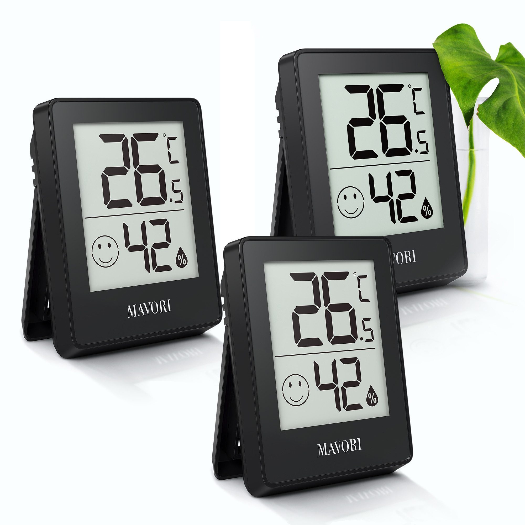 Immer perfektes Raumklima mit diesem digitalen Hygrometer Thermometer! Misst super präzise die Temperatur von -10°C bis 50°C und die Luftfeuchtigkeit von 20% bis 99% RH. Das 2in1 Gerät ist mit nur 6,25x4,3cm kompakt aber nicht zu klein - passt überall hin. Edles schwarzes Design mit großem LCD-Display (42x33mm) das sich bequem ablesen lässt. Die Werte werden alle 10 Sekunden aktualisiert - du siehst also immer den aktuellen Stand. ℃/F Umschaltknopf im Batteriefach integriert. Perfekt fürs Wohnzimmer, Schlafzimmer, Büro oder auch den Weinkeller. Damit erkennst du sofort wenn die Luft zu trocken oder zu feucht ist und kannst gegensteuern. Einfach Batterie rein und sofort einsatzbereit. Nie wieder raten wie das Raumklima ist - mit diesem Teil weißt du es genau!
