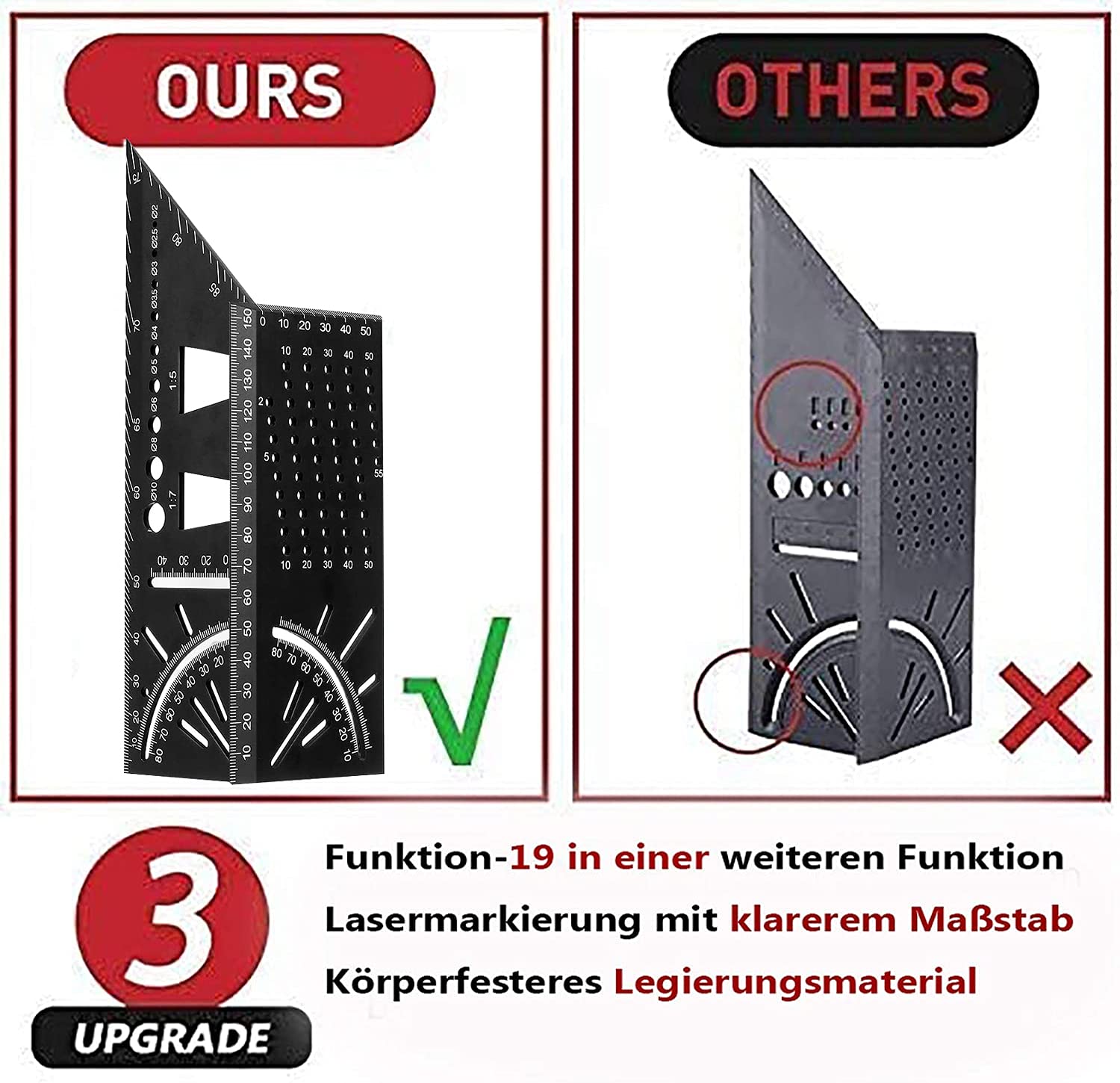 Ein absolutes Profi-Tool für deine Werkstatt! Dieser 3D Gehrungswinkel aus Aluminiumlegierung ist mega vielseitig. Misst Winkel von 15° bis 90° - inklusive 22,5°, 30°, 45°, 60°, 67,5°, 75° und 80°. Perfekt für exakte Gehrungsschnitte und Korpusverbindungen. Das blaue eloxierte Aluminium ist super robust und langlebig. Der Drehstift mit Gummiring ist sicher verstaut - geht nicht verlaut und klappert nicht. Dient auch als Lineal mit mm-Skalierung - ideal für parallele Linien und Bohrpunkt-Bestimmung. Lasergravierte Skalen - gut lesbar und dauerhaft. Für Tischler: Exakte Winkelvermessung und Markierungen. Für Ingenieure: Konstruktionen mit hoher Genauigkeit. Für Heimwerker: Möbelbau, Innenausbau, Dekoration. Funktioniert mit Holz, Edelstahl, Kunststoff und Marmor. Kompakt und leicht aber extrem stabil. Ein Allrounder der in keiner Werkstatt fehlen sollte. Ob Profi oder Hobbyhandwerker - mit diesem Winkel machst du jede Arbeit präziser und einfacher. Einfach ein super Tool!