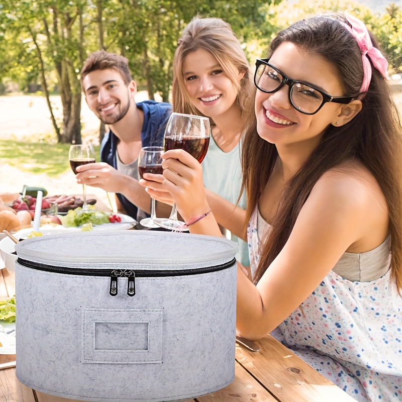 Einfach die Teller hineinstellen, Reißverschluss zu - und schon ist alles sicher verstaut und transportbereit. Ein echter Organisationstalente für alle, die Wert auf Ordnung und Schutz ihres Geschirrs legen! 👍
