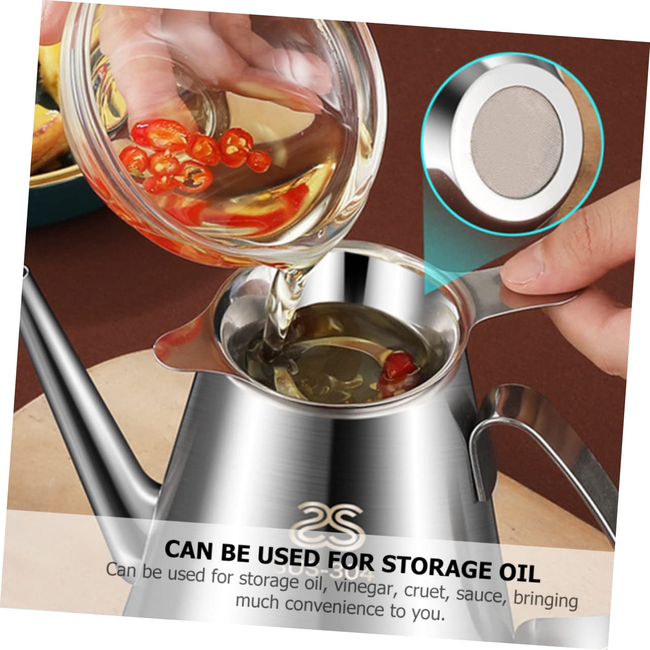 Schluss mit verschüttetem Öl und unordentlichen Flaschen! Dieser Edelstahl-Ölbehälter von CIYODO macht das Ölausgießen zum sauberen Vergnügen. Der integrierte Filter hält Speisereste und Krümel zurück - so bleibt dein Öl länger frisch und kann mehrmals verwendet werden.