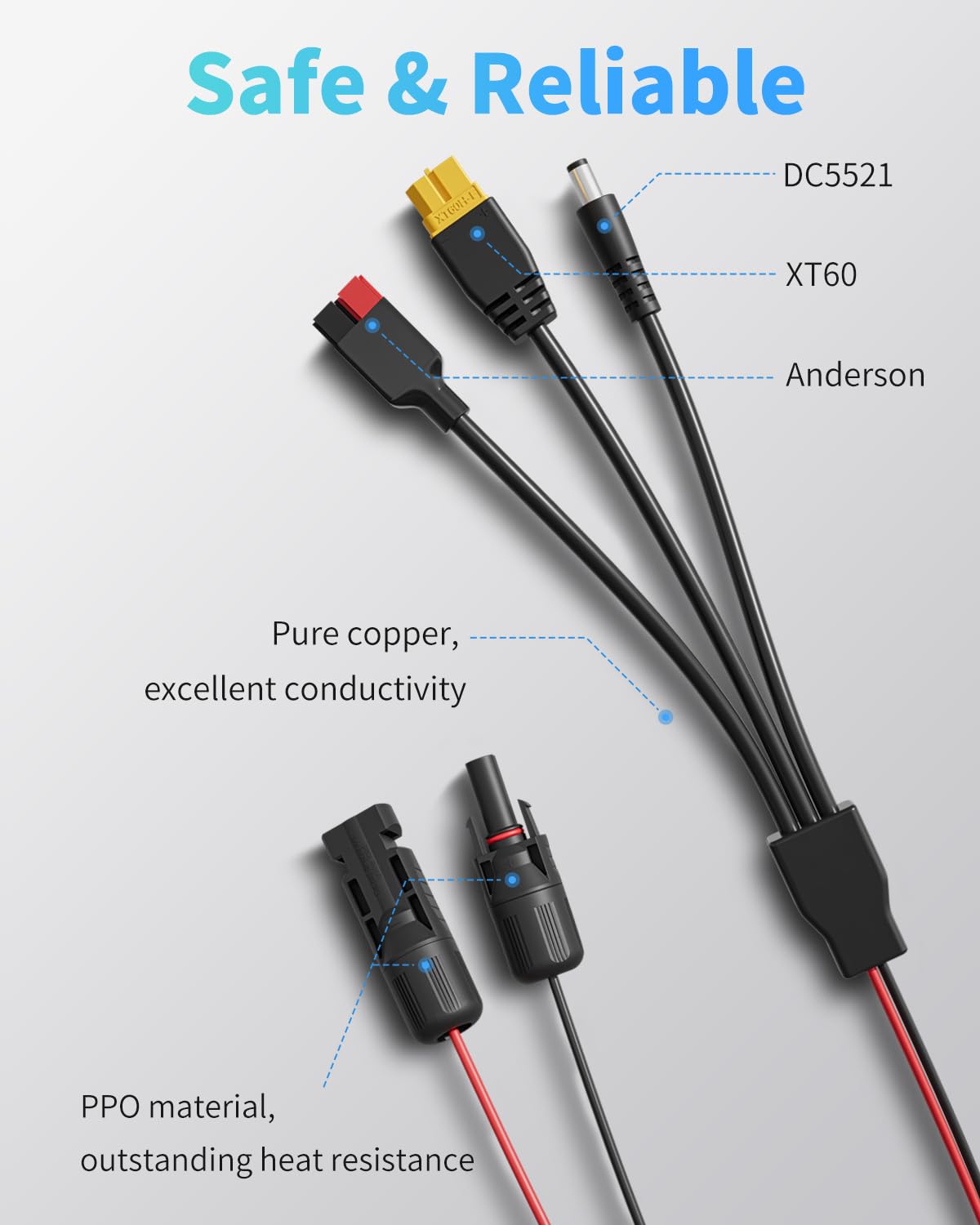 Hey, wenn du nach einer cleveren Lösung suchst, um deine Powerstation mit verschiedenen Solarpanels zu verbinden, bist du hier genau richtig! Dieser 4-in-1 Adapter hat wirklich alles, was du brauchst - mit Anschlüssen für XT60, DC5521 UND DC7909. Super praktisch, denn so musst du nicht ständig zwischen verschiedenen Kabeln wechseln. Das Beste: Die Stecker sind mit sauerstofffreiem Kupferdraht (12AWG-18AWG) gemacht, was für stabilen Strom und weniger Widerstand sorgt. Perfekt für Solarpanels bis 140W bei 18V oder 280W bei 36V. Ob du eine Powkey, SinKeu oder Ecoflow River/Delta Serie hast - hier passt einfach alles. Die Isolierung ist übrigens richtig gut gemacht, hält auch bei extremen Temperaturen und ist feuerfest. Einfach dein Gerät checken und los geht's mit dem Solar-Laden! So machst du dich unabhängiger und kannst unterwegs deine Geräte laden, ohne Stress. Die Qualität spürt man sofort - das Kabel liegt gut in der Hand und die Stecker sitzen bombenfest. Echt ein Game-Changer für alle, die viel mit Powerstations und Solar unterwegs sind!