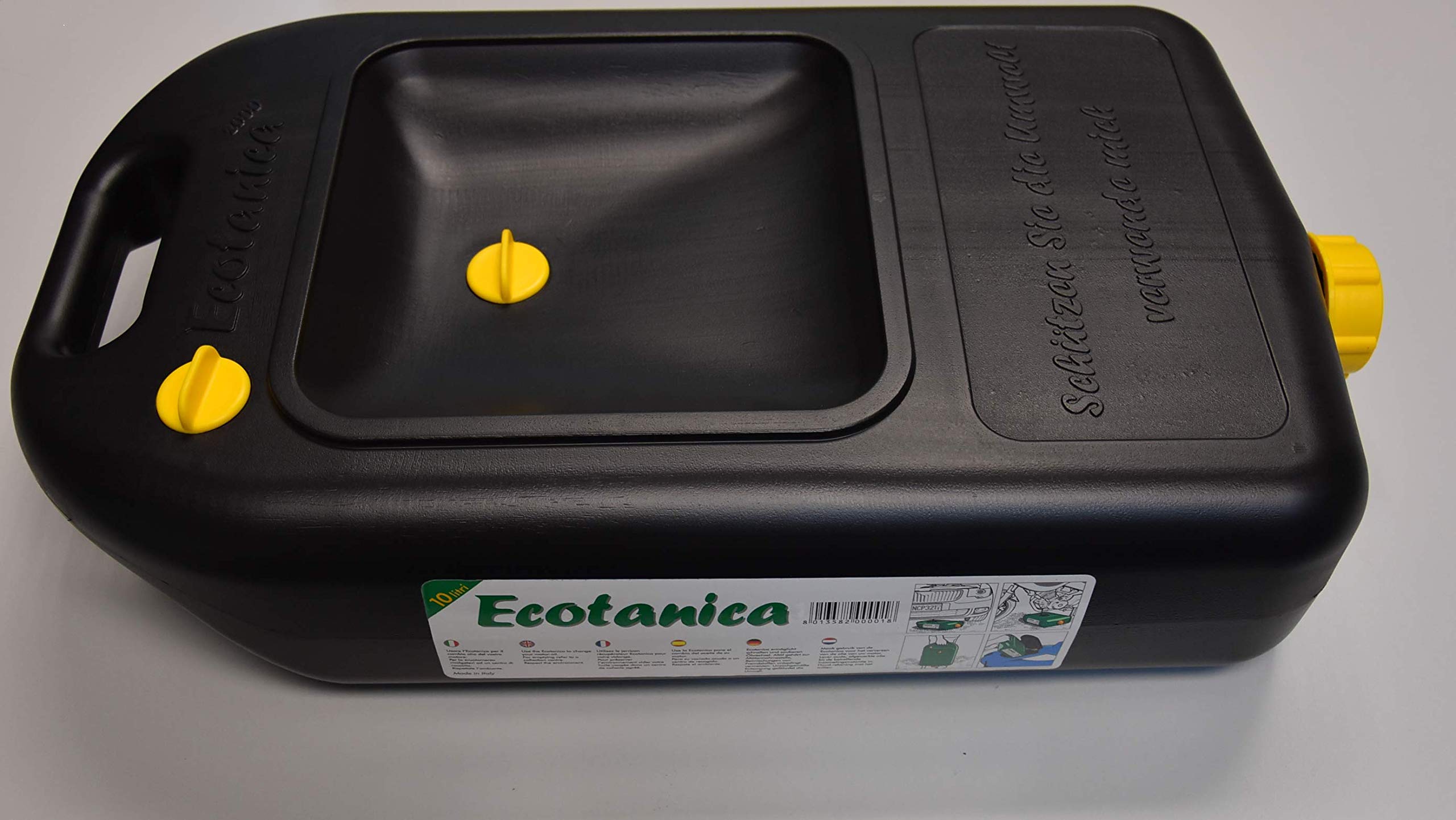 Ein muss für jede Werkstatt! Der Ecotania Ölauffangbehälter fasst 10 Liter und ist perfekt um Altöl, Kühlmittel oder andere Betriebsflüssigkeiten sicher aufzufangen. Aus robustem Kunststoff in schwarz, mit praktischem Tragegriff und dicht schließendem Deckel.\\n\\nSuper praktisch beim Ölwechsel oder anderen Arbeiten am Auto. Verhindert lästige Flecken auf dem Boden und hilft dir, Altstoffe umweltgerecht zu entsorgen. Die kompakte Form passt auch in kleinere Werkstätten oder Garagen.\\n\\nTechnische Daten:\\n- Fassungsvermögen: 10 Liter\\n- Farbe: Schwarz\\n- Material: Robuster Kunststoff\\n- Mit Tragegriff\\n- Dicht schließender Deckel\\n\\nEinfach, praktisch, zuverlässig - damit bei deinen Schrauberarbeiten nichts daneben geht!