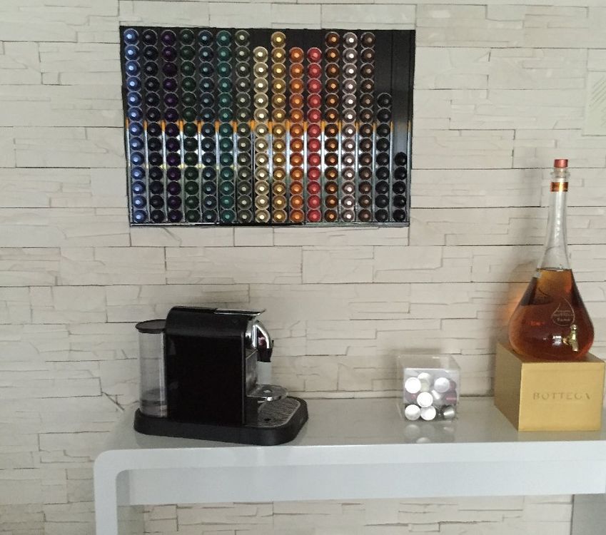 Endlich Ordnung in deiner Kaffee-Ecke! Dieser Vertuo Kapselspender ist nicht nur super praktisch, sondern sieht auch noch richtig stylish aus. Mit dem doppelten Tragsystem - Magnete für metallische Flächen UND starke Klebestreifen - kannst du ihn überall anbringen: An der Wand, am Kühlschrank, unter der Arbeitsplatte oder inm Schrank. Platz für 12 Vertuo-Kapseln hast du allemal, sodass du immer deinen Lieblingskaffee griffbereit hast. Das weiße Design fügt sich perfekt in jede moderne Küche ein und sieht einfach clean aus. Aus robustem Methacrylat gefertigt, ist der Spender nicht nur langlebig, sondern auch super easy zu reinigen - einfach mit nem feuchten Tuch drüberwischen. Das Beste: Du kannst deine Kapseln nach Farben sortieren und so ein richtig cooles Mosaik kreieren! So wird Kaffee machen zum echten Erlebnis. Maße: 27,5cm hoch und 22,5cm breit - kompakt genug für jede Küche, aber groß genug für deine komplette Kaffee-Auswahl. Ein Must-Have für alle Nespresso-Fans!