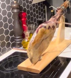 Endlich professionell Schinken schneiden - mit der Quid Pedroches Schinkenhalterung! Dieses praktische Utensil aus robustem Metall und natürlichem lackiertem Holz macht das Schneiden deines Jamón zum puren Vergnügen. Die rostfreien Edelstahl-Spikes halten den Schinken sicher fest, während das innovative Drehgelenk für präzise Schnitte sorgt. Einfach zu montieren - der Montageschlüssel liegt bereits bei. Perfekt für alle Schinken-Liebhaber, die Wert auf traditionelle Zubereitung legen. Ob für den Hausgebrauch oder besondere Anlässe - mit dieser Halterung wird das Schinkenschneiden zum echten Erlebnis! Stabil, sicher und absolut benutzerfreundlich. Ein Must-Have für jede Küche, in der Qualität und Genuss groß geschrieben werden. Hol dir den spanischen Flair direkt nach Hause!