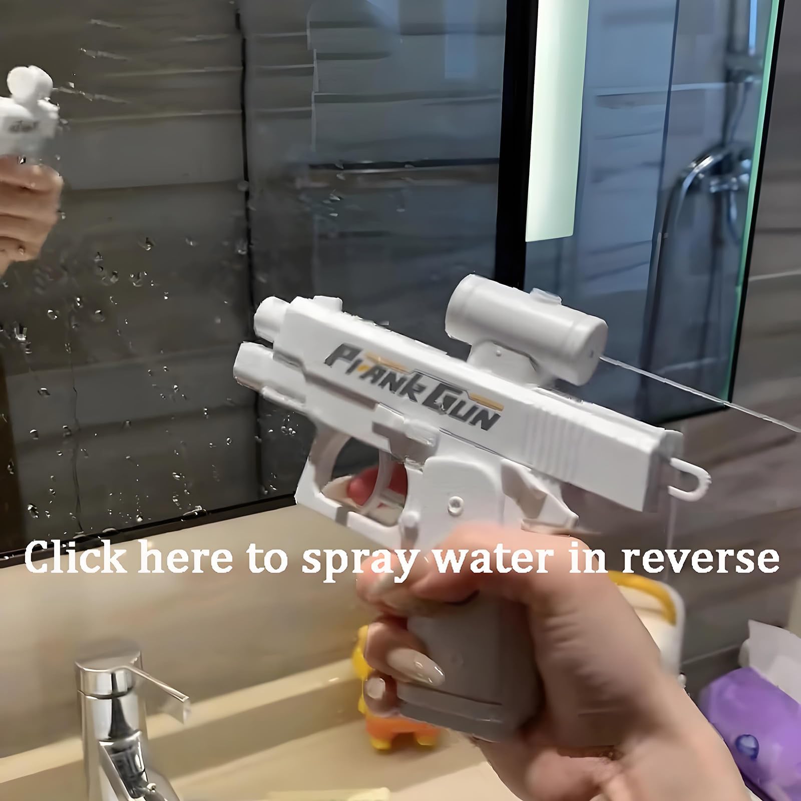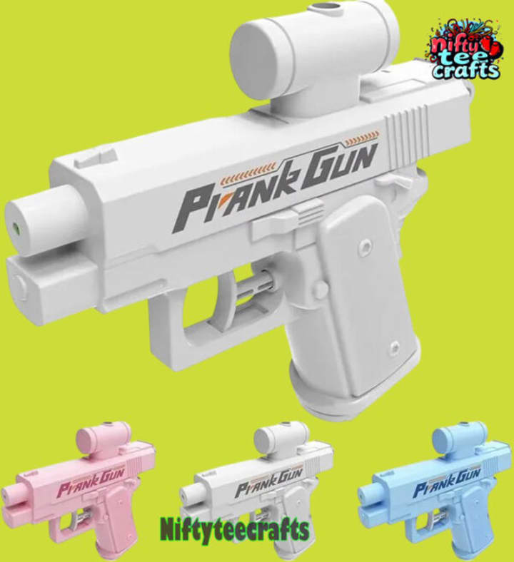 Achtung, Wasseralarm! Diese coole Prank Water Gun ist der absolute Hit für jeden, der gerne mal einen harmlosen Streich spielt. Das Besondere: Sie spritzt Wasser von VORNE und HINTEN! Perfekt, um deine Freunde zu überraschen. Einfach befüllen, zielen und abdrücken - die starke Wasserfontäne trifft sicher ihr Ziel. Aus robustem Kunststoff gebaut und resistent gegen Stürze - hält also auch wildere Wasserschlachten aus. Die Bedienung ist super einfach, selbst für die Kleinen. Ob im Garten, am Strand oder auf der Party - mit dieser Wasserpistole wird's garantiert lustig! Aber Vorsicht: Nasses Shirt vorprogrammiert! Perfekt für heiße Sommertage oder einfach mal, um für Abkühlung und Lacher zu sorgen. Einfach auffüllen und loslegen - der Spaß kann beginnen! Nur nicht wundern, wenn du am Ende selbst nass wirst - bei dieser Zwei-Wege-Funktion ist alles möglich!