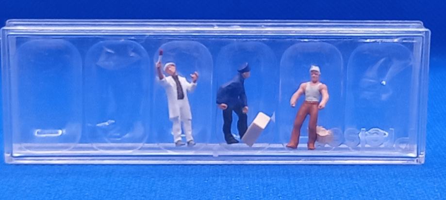 Hallo Modelleisenbahn-Fan! Diese Preiser Figuren bringen Leben auf deine Anlage. Im Maßstab 1/87 (HO) und handbemalt - jede Figur ein kleines Kunstwerk. Die Serie \Exclusive\ von Preiser steht für höchste Qualität und Detailtreue. Im Set sind 6 verschiedene Figuren die sofort einsatzbereit sind. Einfach auspacken und aufstellen - kein Zusammenbau nötig. Perfekt für deine Livree-Szenerie oder andere Dioramen. Die Verarbeitung ist wie immer bei Preiser erstklassig. Jede Figur hat ihren eigenen Charakter und trägt zur authentischen Atmosphäre bei. Ob als Lieferanten, Arbeiter oder Passanten - diese Figuren machen deine Anlage lebendig. Aus robustem Kunststoff gefertigt, damit sie auch bei häufigem Gebrauch nicht kaputt gehen. Super als Geschenk für Eisenbahn-Enthusiasten oder zum Selbstbehalten. Übrigens: Keine Batterien nötig - der Spaß kommt ganz ohne Strom aus! Einfach hinstellen und freuen. Viel Vergnügen mit diesen tollen Details für deine Modellbahn!
