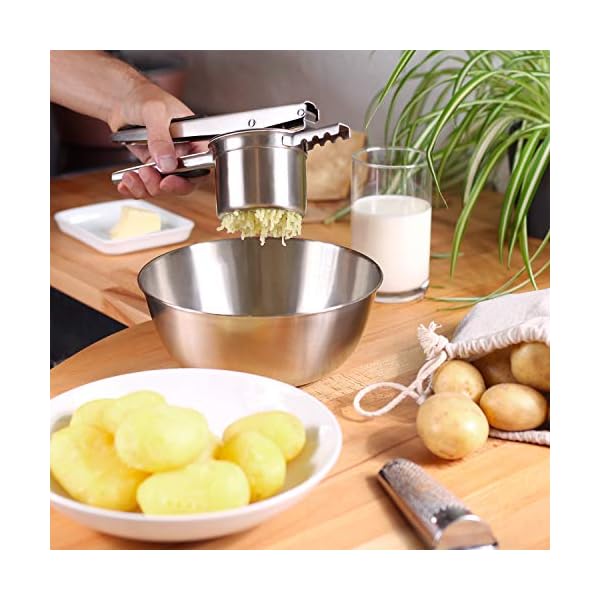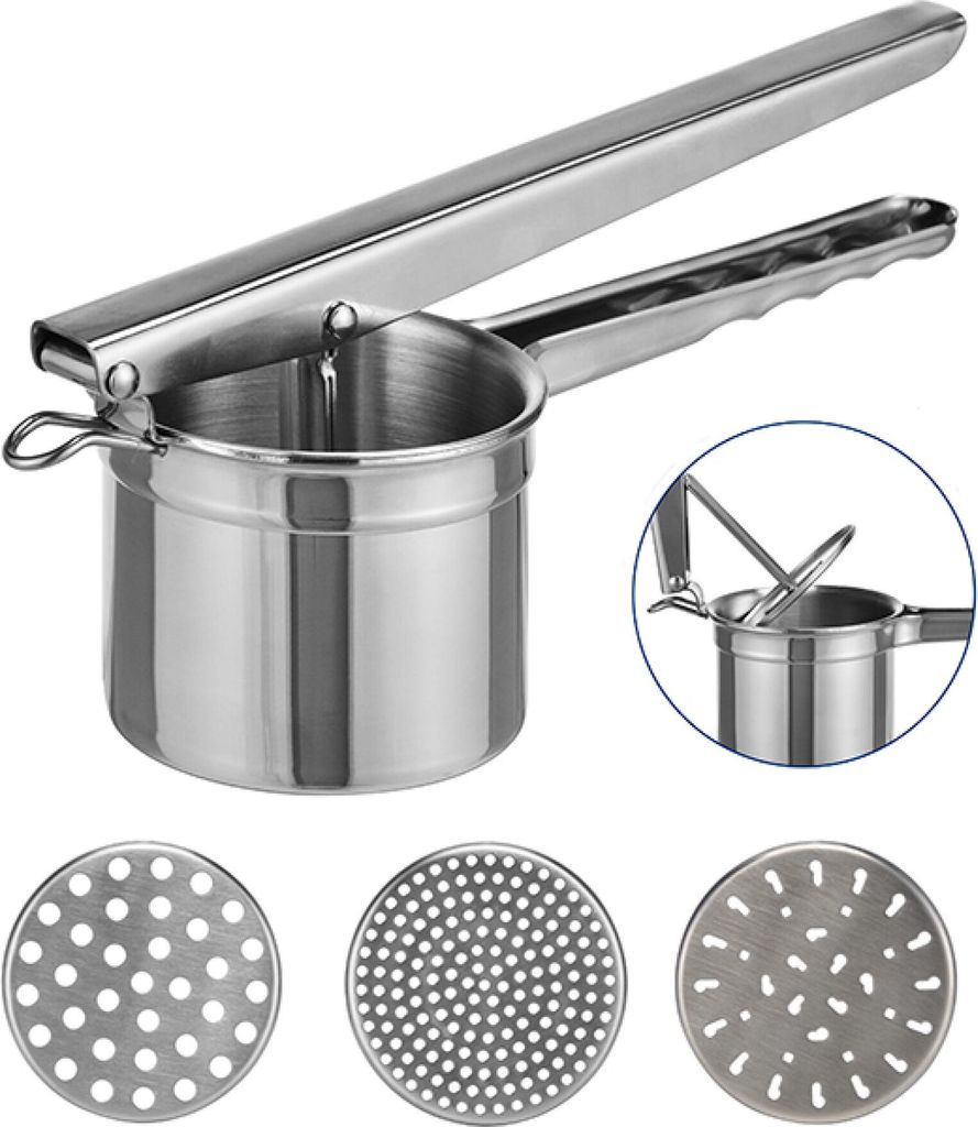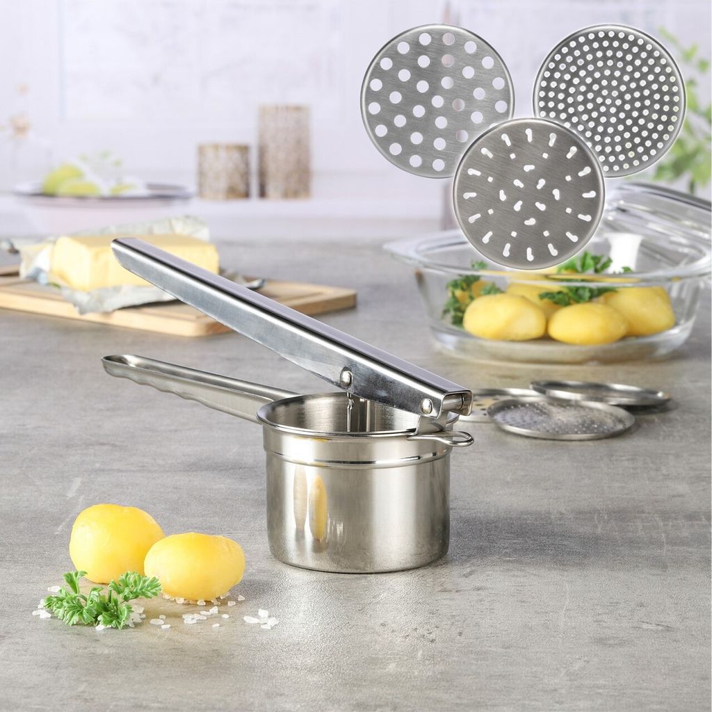 Der Alleskönner für deine Küche! Diese multifunktionale Presse von Relaxdays macht aus einfachen Zutaten im Handumdrehen köstliche Gerichte. Egal ob fluffiger Kartoffelbrei, frische Spätzle oder trendiges Spaghettieis - mit dieser Presse wird Kochen zum Erlebnis! 🥔\n\nDas Set kommt mit drei verschiedenen Lochscheiben (2mm und 4mm), sodass du die Konsistenz ganz nach deinem Geschmack bestimmen kannst. Die robuste Konstruktion aus Kunststoff und Edelstahl garantiert Langlebigkeit, während die ergonomischen Griffe für komfortables Arbeiten sorgen.\n\nBesonders praktisch: Die Presse ist super einfach zu reinigen und spülmaschinenfest. So hast du mehr Zeit zum Genießen und weniger Arbeit mit dem Abwasch!\n\n• 3 Lochscheiben in verschiedenen Größen\n• Material: Kunststoff & Edelstahl\n• Maße: 11x36x10 cm\n• Für Kartoffeln, Spätzle, Spaghettieis & mehr\n• Einfache Reinigung\n\nPerfekt für Familien, Hobbyköche oder einfach jeden, der gerne mal was Neues ausprobiert. Mit dieser Presse zauberst du im Nu leckere Gerichte, die jeden beeindrucken. Einfach ausprobieren und begeistern! 👨🍳