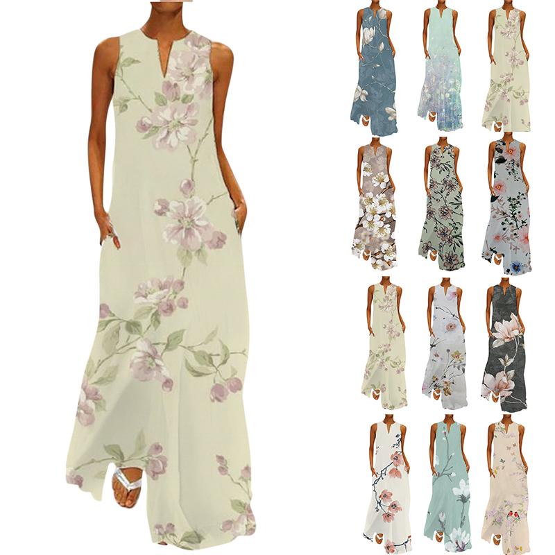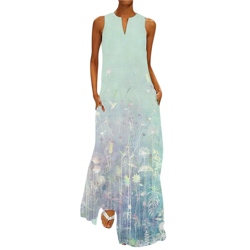 Wow, was für ein traumhaftes Sommerkleid! Dieses Skang Kleid für Frauen überzeugt mit einem wunderschönen Gradient-Print in Blumenoptik - einfach perfekt für die warme Jahreszeit. Der tiefe V-Ausschnitt ist total schmeichelhaft und der ärmellose Schnitt sorgt für maximale Bewegungsfreiheit. Das lange Design macht es super vielseitig: Ob für den Strand, Sommerfeste, Dates oder einfach nur für einen entspannten Stadtbummel - mit diesem Kleid bist du immer perfekt angezogen. Der lässige, fließende Stoff umspielt deine Figur auf die schönste Weise und der niedrige Kragen gibt dem Kleid diesen besonderen Twist. Leicht, luftig und unglaublich comfortable - so soll Sommer sein! Das Kleid fällt schön weich und ist trotzdem blickdicht genug. Kombinier es mit Sandalen, Sneakern oder Wedges - es passt einfach zu allem. Mach dich bereit für Komplimente und hol dir dieses absolute Must-Have für deine Sommer-Garderobe!