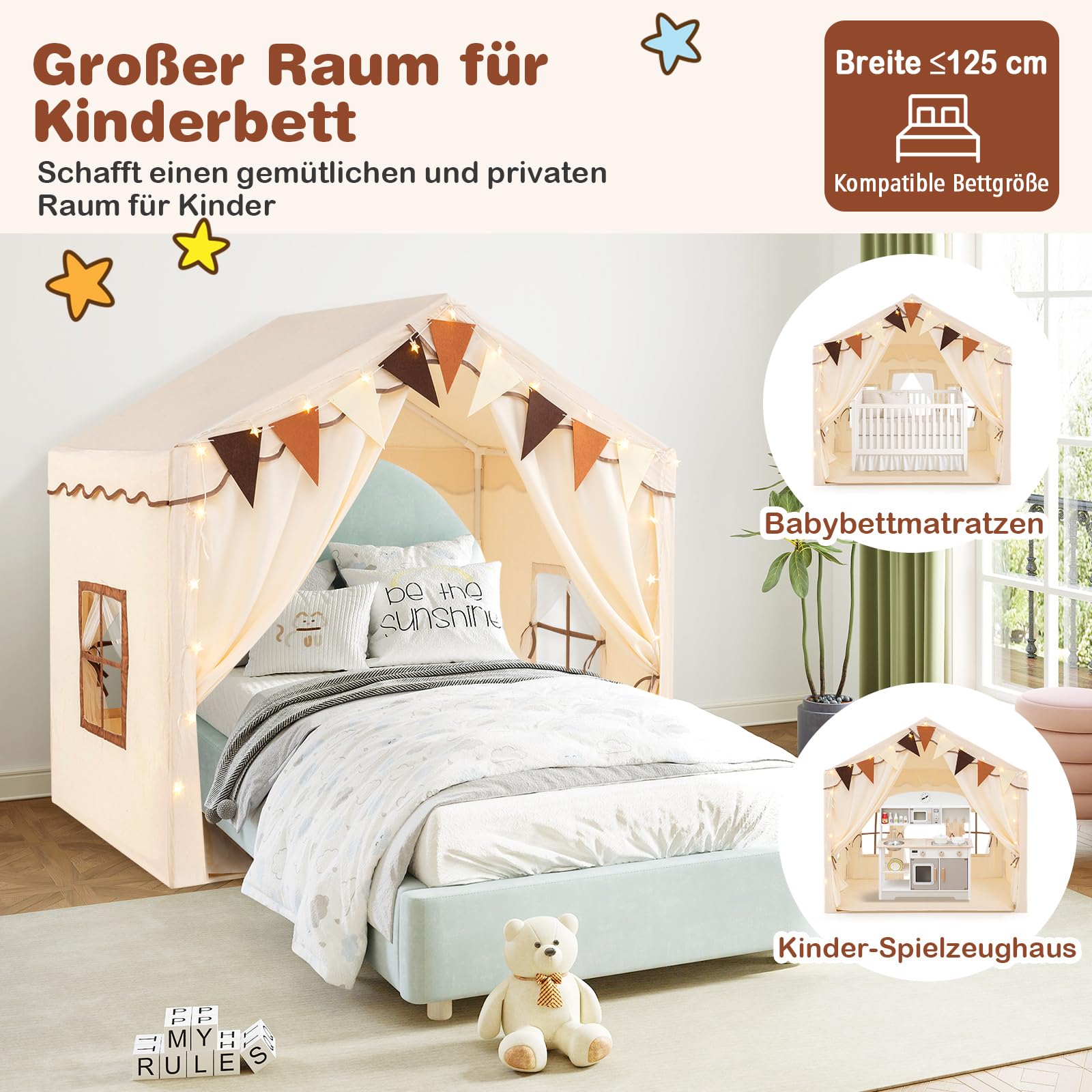 Egal ob im Kinderzimmer, Wohnzimmer oder Garten - dieses Zelt bietet deinen Kindern ihren eigenen Rückzugsort. Perfekt für Geburtstage, Verkleidungsspiele oder einfach zum Träumen!