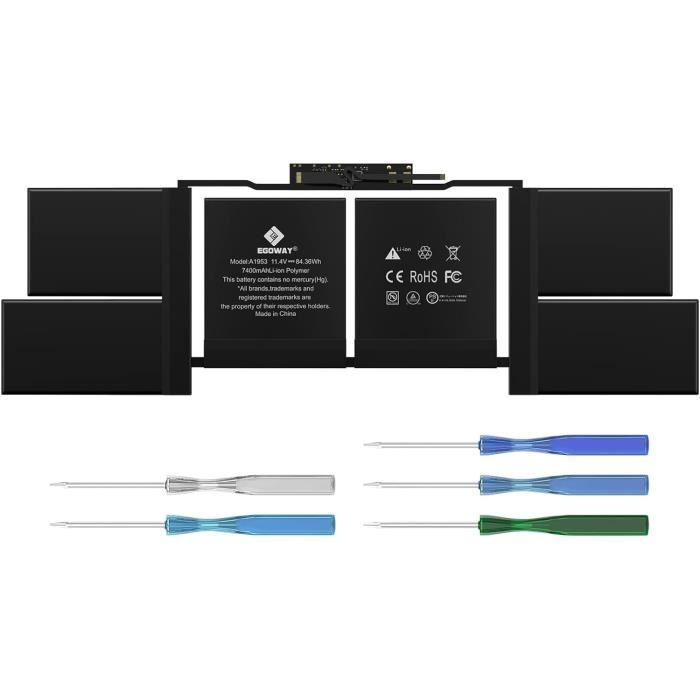 Dein MacBook Pro 15 Zoll mit Touch Bar (2018-2019) läuft wieder wie neu! Dieser A1953 Akku hat 83.6Wh Kapazität und 11.4V Spannung - genau wie das Original. Passt für Modelle A1990 mit EMC 3215 und 3359. Mit intelligentem Control-Chip für sicheres Laden und Entladen. Vollständiger Schutz vor Überhitzung, Überstrom, Überspannung und Kurzschluss. 100% neue A-Zellen für maximale Laufzeit. Einfacher Einbau - mach dein MacBook wieder mobil. Kompatibel mit vielen Modellnummern inklusive MV902, MV912, MR942 und anderen.