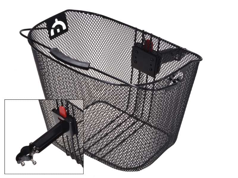 Der engmaschige Drahtkorb ist richtig stabil und hat einen praktischen Tragegriff. Du kannst ihn also auch als Tragetasche nutzen wenn du vom Rad absteigst.