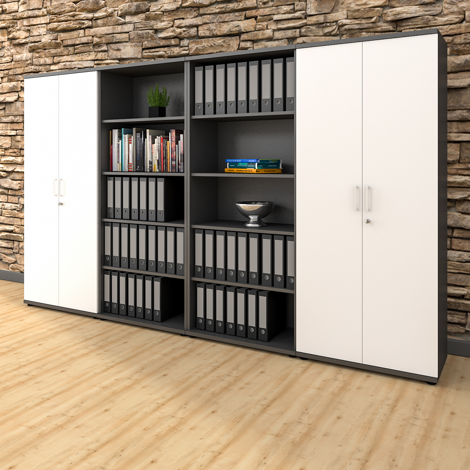 Profi Aktenschrank 5 OH Weiß-Anthrazit - Abschließbarer Büroschrank Mit Flügeltüren