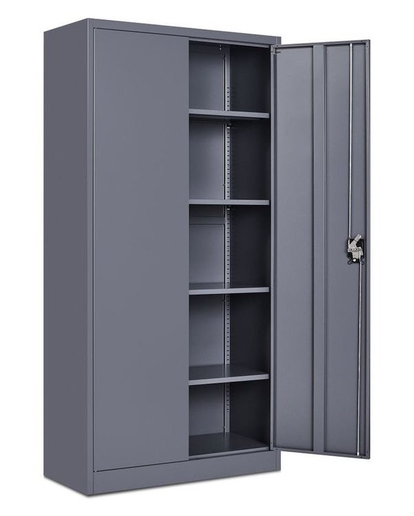 • Profi Aktenschrank 5 OH Weiß-Anthrazit - Abschließbarer Büroschrank Mit Flügeltüren