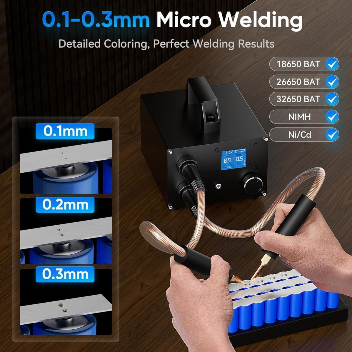 Wow, dieses Punktschweißgerät ist echt ein Kraftpaket! Mit zwei starken 3000F Farad-Kondensatern und intelligentem MCN-Controller macht es Schweißarbeiten zum Kinderspiel. Du kannst die Leistung stufenlos von 1 bis 120W einstellen - perfekt für vernickelte Stahlbänder von 0.1-0.3mm Stärke. Das Doppelimpuls-Prinzip sorgt für super glatte und gleichmäßige Schweißstellen. Und das Beste: Das Gerät läuft auch nach 12 Stunden Dauerbetrieb noch kühl, dank der cleveren Kühlöffnungen. Das LCD-Display zeigt dir immer genau an, was Sache ist: Spannung, Leistung, Verzögerung - alles im Blick. Die abnehmbaren Ersatzstifte sind praktisch, und die Frosting-Oberfläche aus hochwertigem ABS macht das Gerät nicht nur robust, sondern auch leicht zu reinigen. Mit nur 9,05x5,51x2,79 Zoll passt es auf jeden Werkstatttisch. Egal ob du Akkus reparierst oder kleine Metallteile verbindest - dieses Teil ist dein bester Freund!