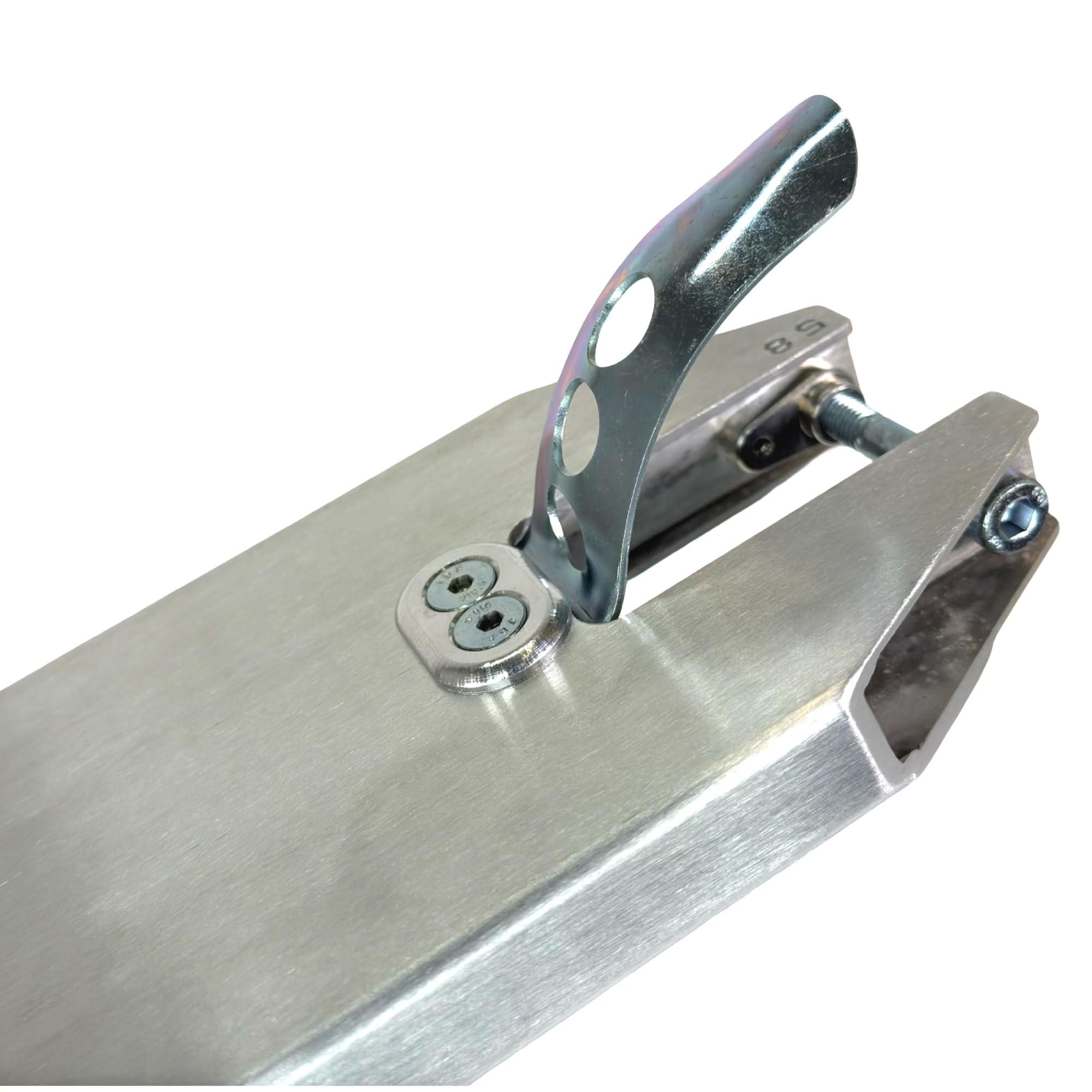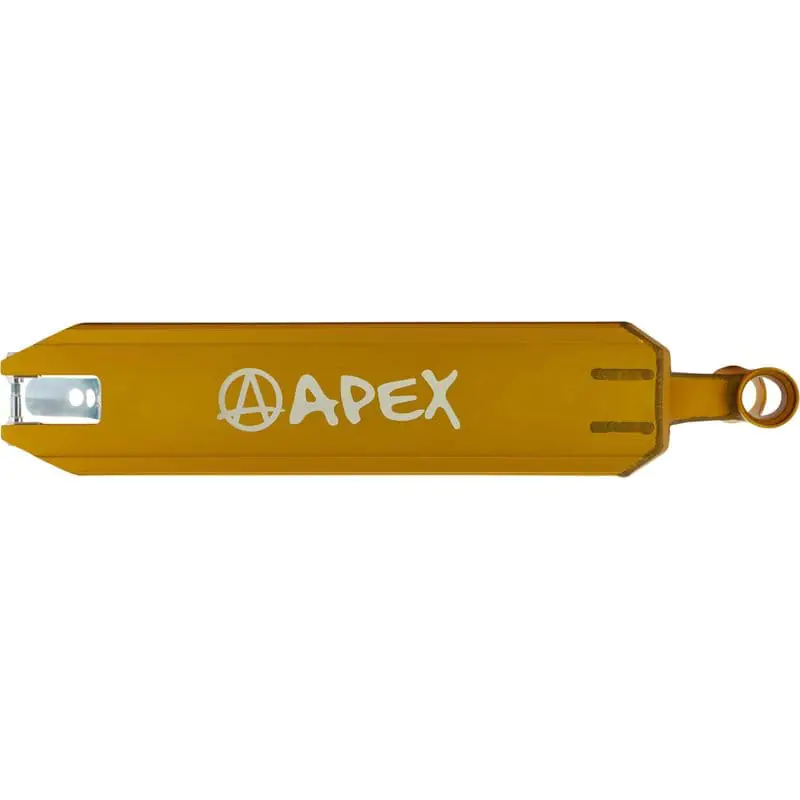 Wow, dieses Apex Deck ist einfach der Hammer! Entwickelt mit den besten Scooter-Profis aus Australien - die wissen ja schließlich, was wirklich zählt. Mit 49cm Länge und aus robustem Aluminium ist es perfekt für alle deine Tricks: Ob Fingerwhips, Rewinds oder Grinds - das flache Design gibt dir volle Kontrolle. Der 82,5 Grad Headtube Winkel und 110mm Höhe sorgen für optimale Stabilität. Passt zu allen gängigen Kompressionssystemen und nimmt Räder bis 110mm auf. Das integrierte Bremssystem verhindert lästige Bremsspuren auf den Rädern. Und das coole Hinterrad-Spacer-Setup macht nicht nur was her, sondern erleichtert auch den Radwechsel. Einfach das beste Deck da draußen - probier's aus und du wirst den Unterschied sofort merken! Perfekt für Park und Street.
